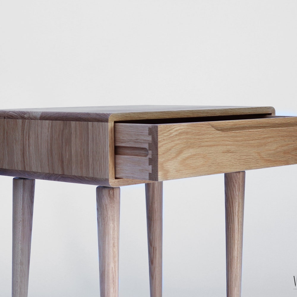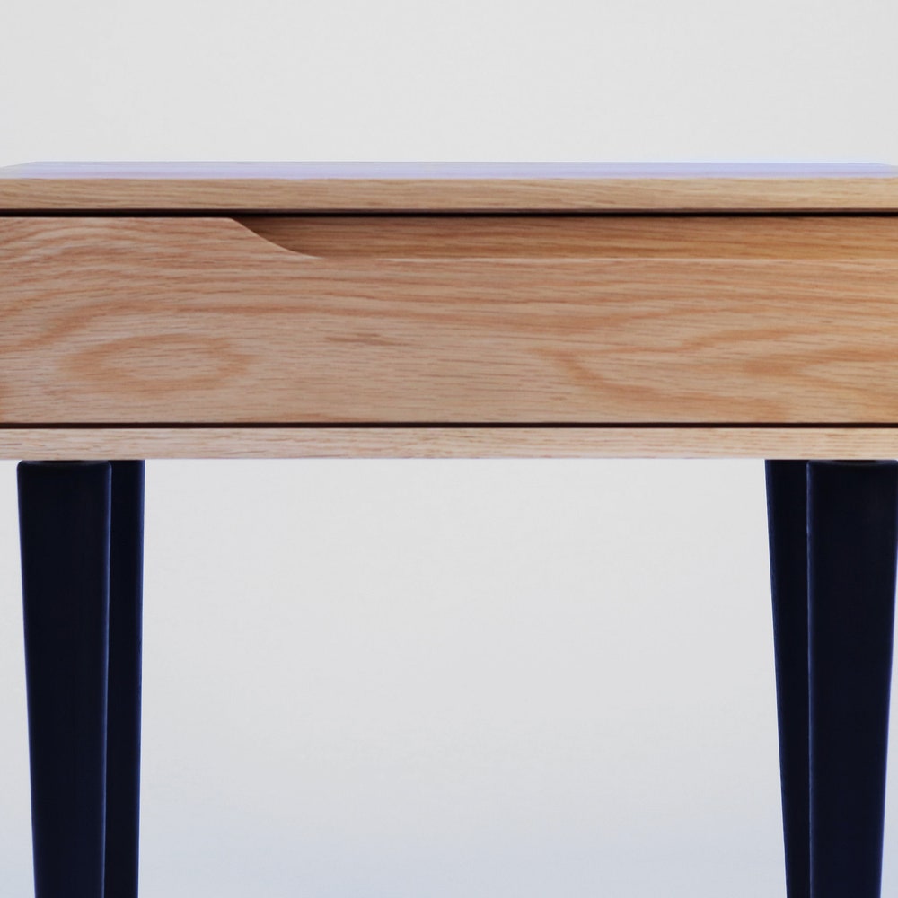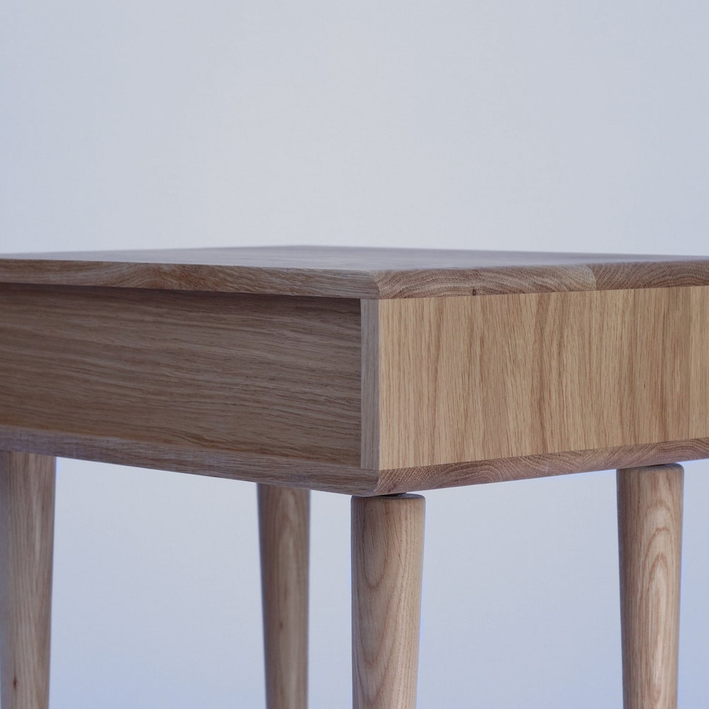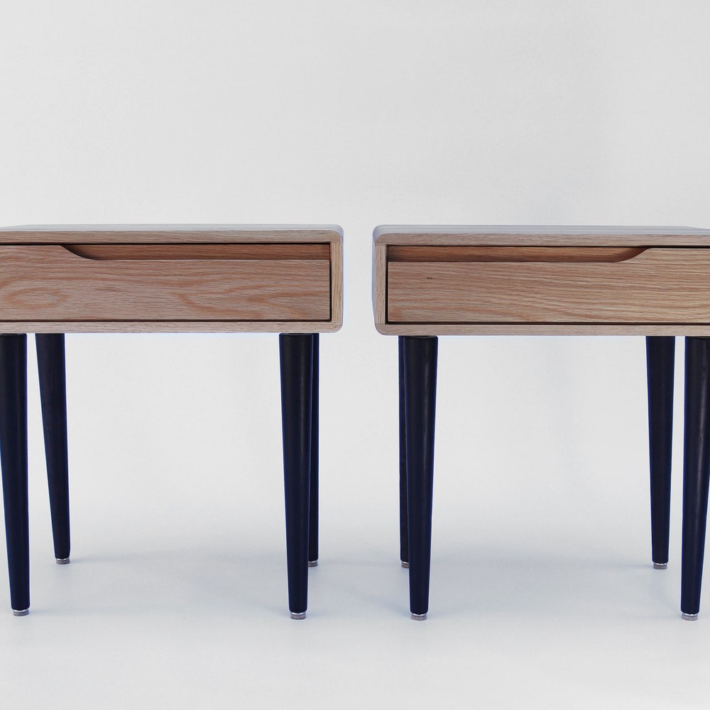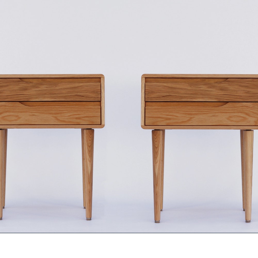 Pair of solid oak nightstand, Bedside table with 1 or 2 drawer, Mid Century Table