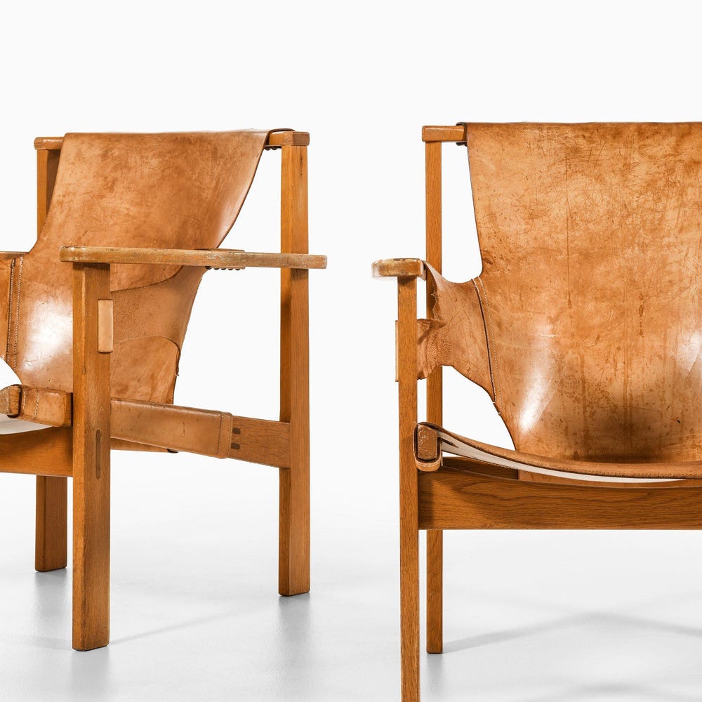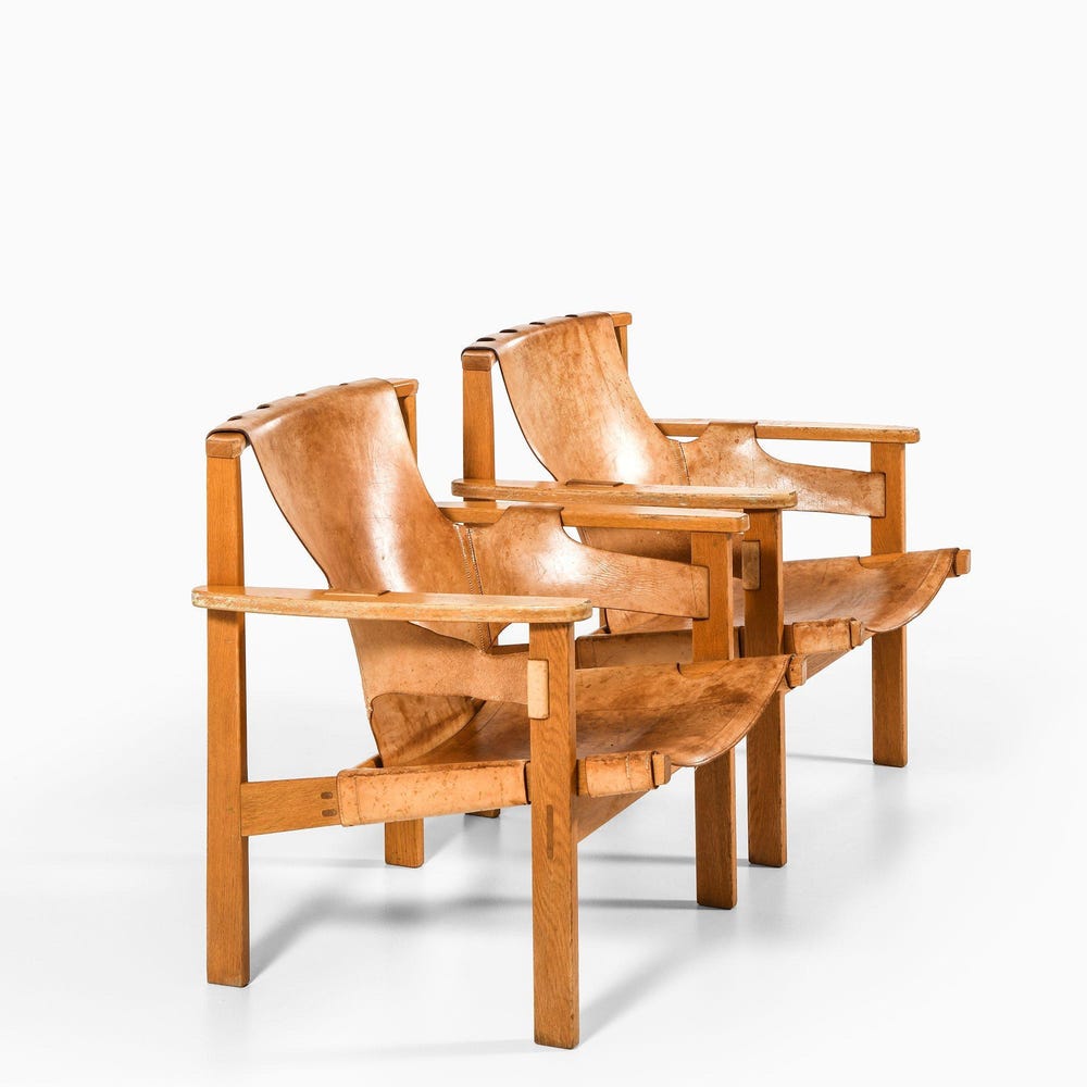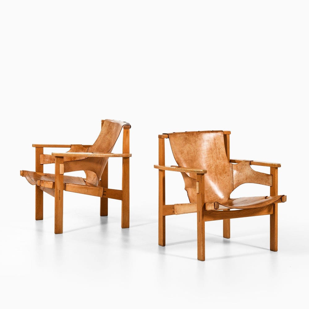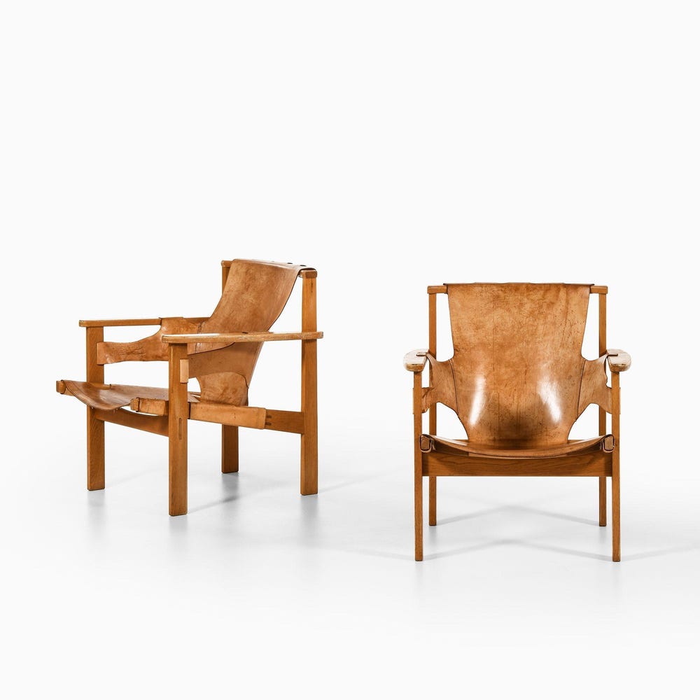 Pair of Vintage Trienna Easy Chairs – Scandinavian Craftsmanship in Oak & Original Leather
