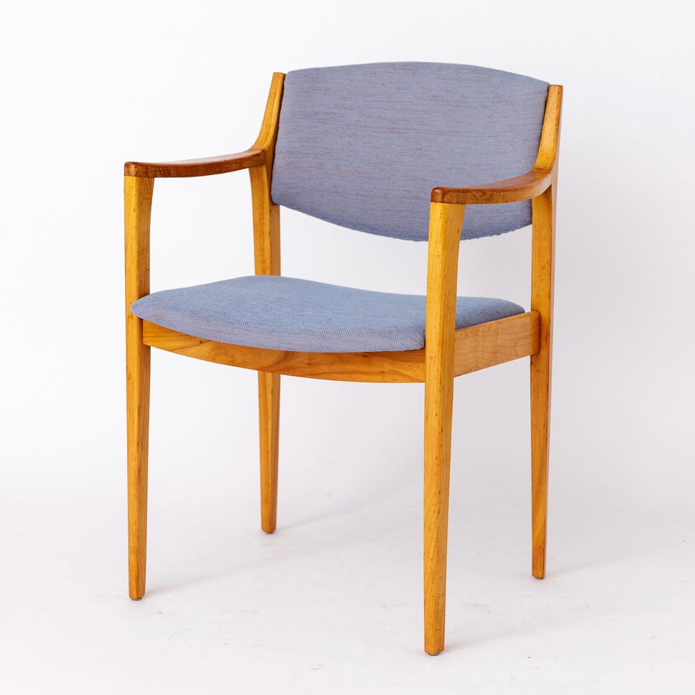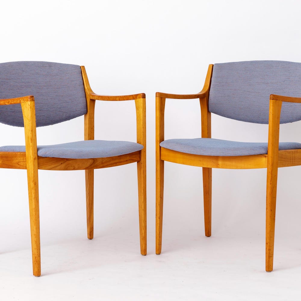 Pair of Vintage German Armchairs | Refurbished & Reupholstered A unique pair of vintage armchairs of German origin (manufacturer unknown), expertly refurbished and reupholstered for a fresh look. The listed price is for the pair. Features:Sturdy beech wood frame, carefully refurbished and oiledSeat and back newly reupholstered in a stylish blue textileGood vintage condition with […]