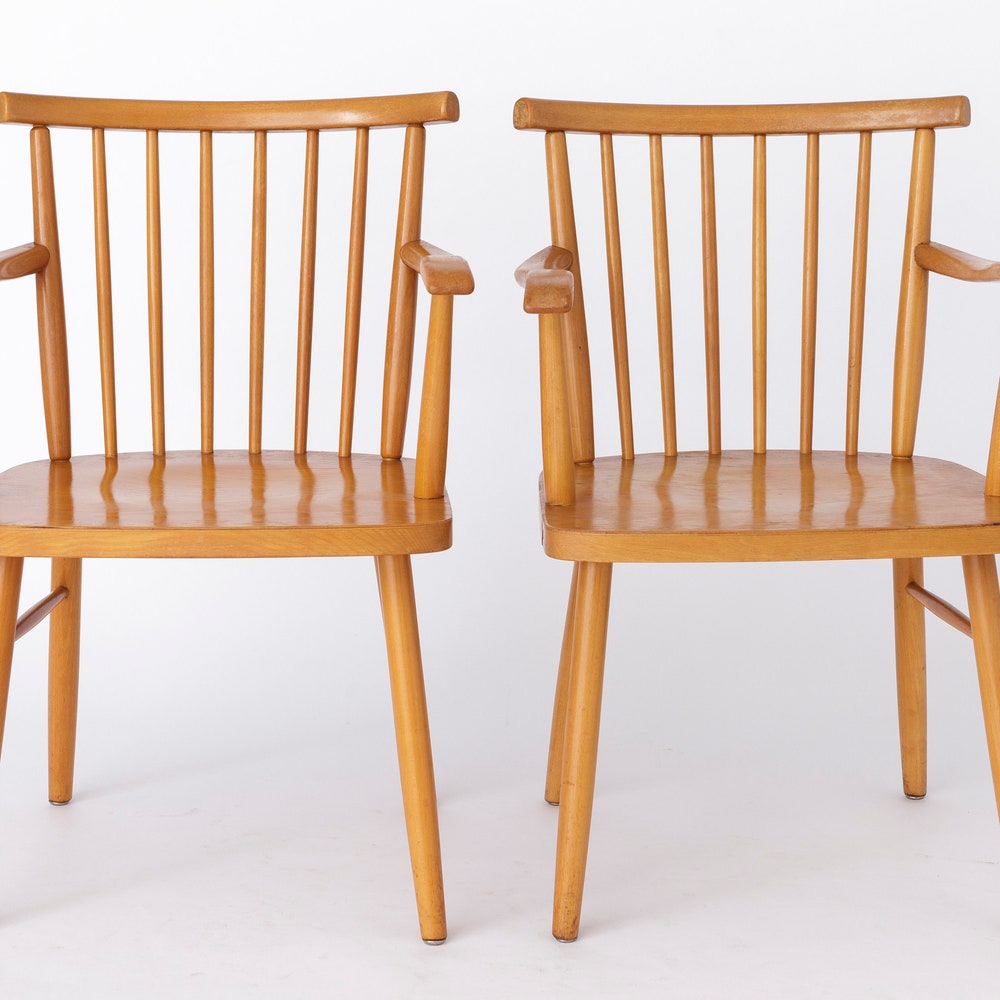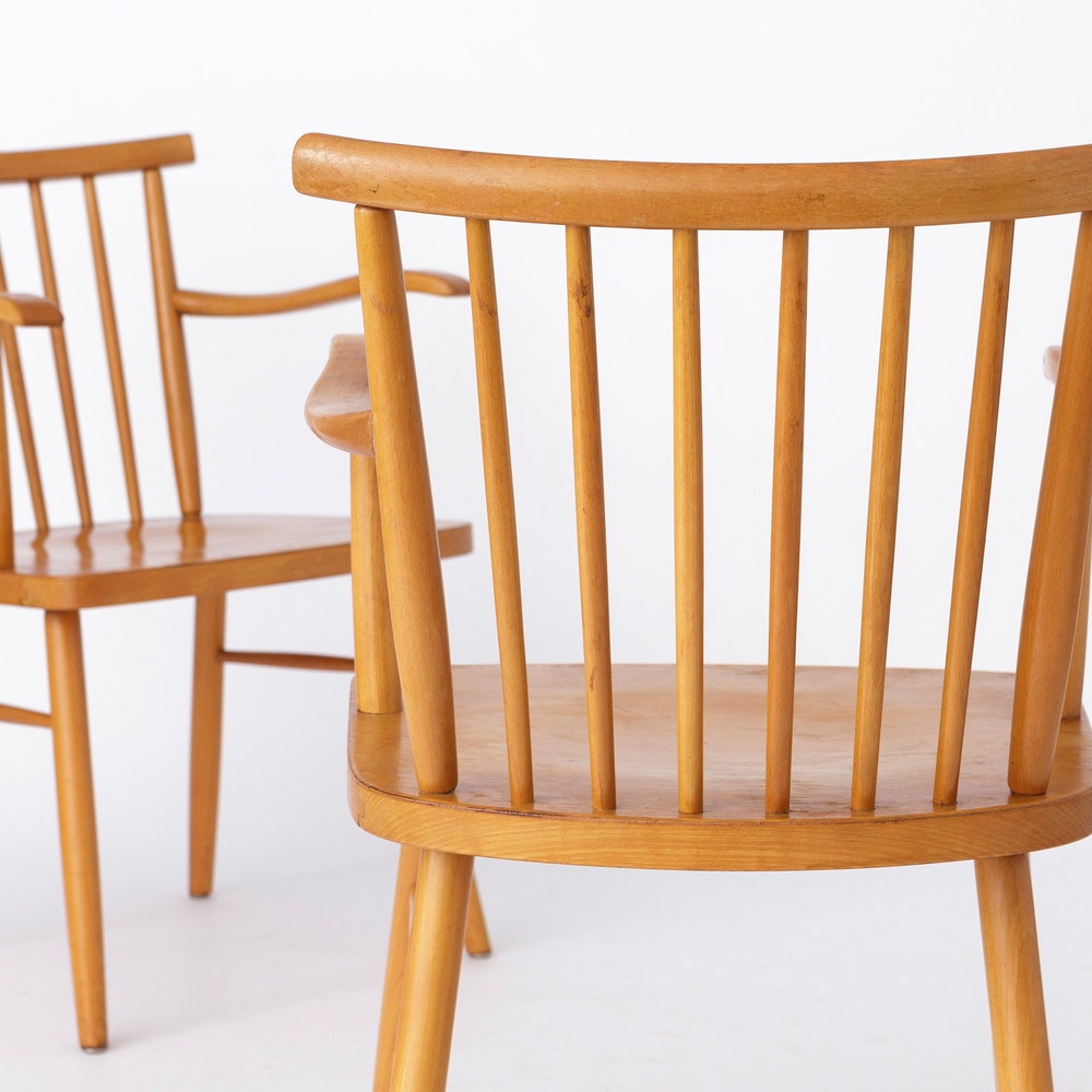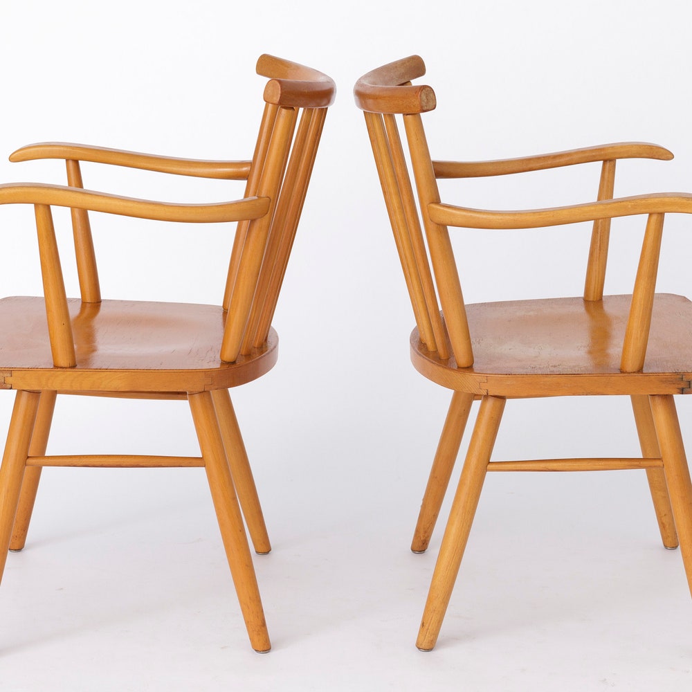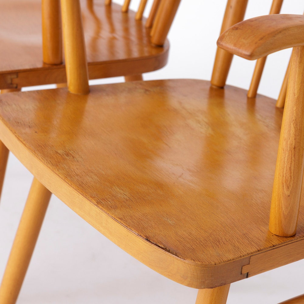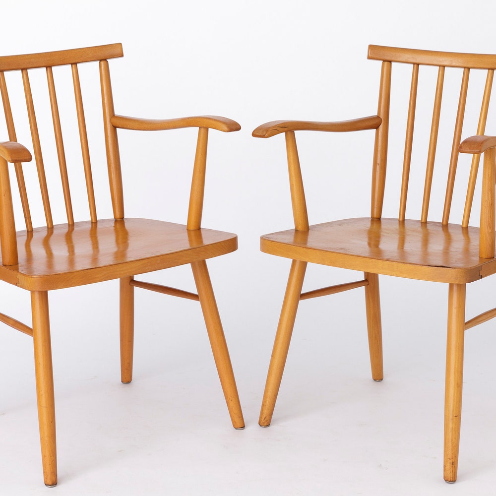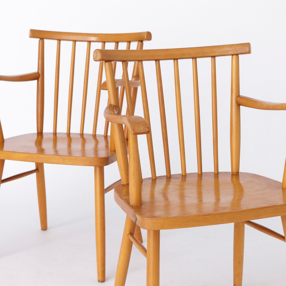 Pair of Vintage Lübke Armchairs, 1950s, Beech Wood, Refurbished, German Design
