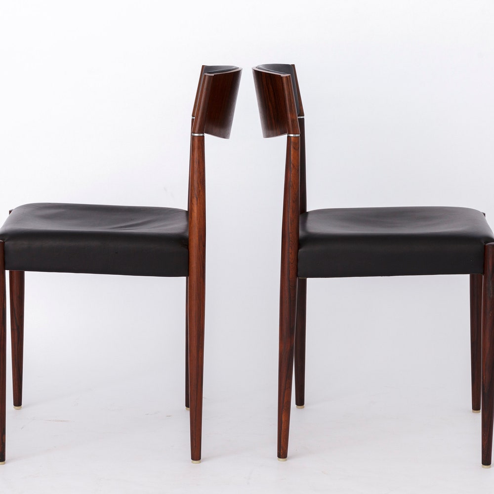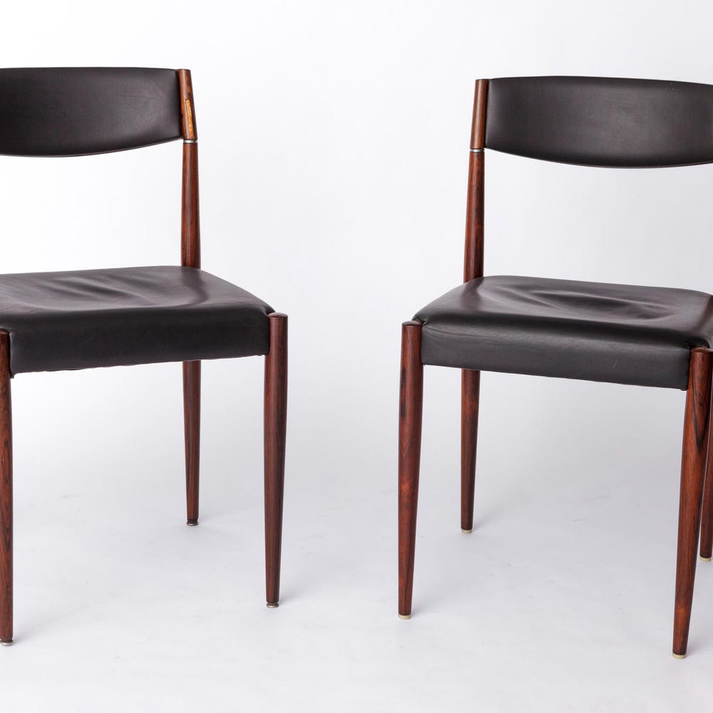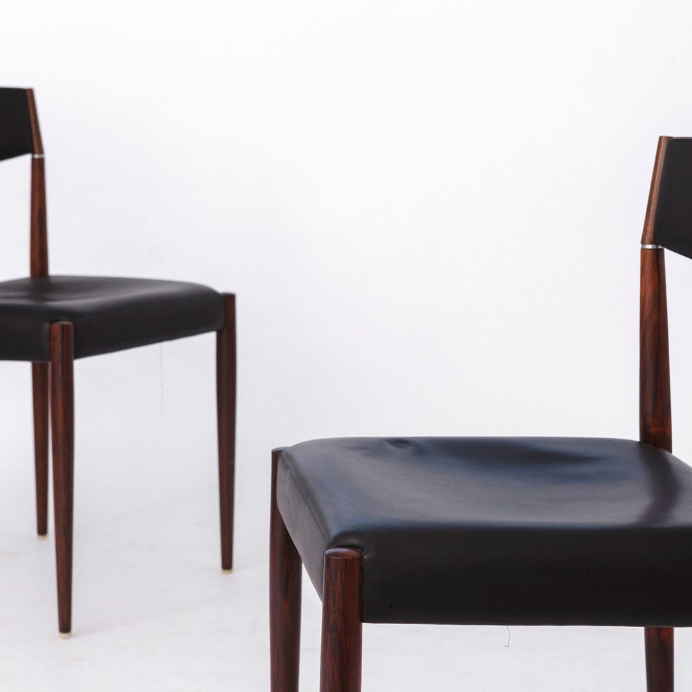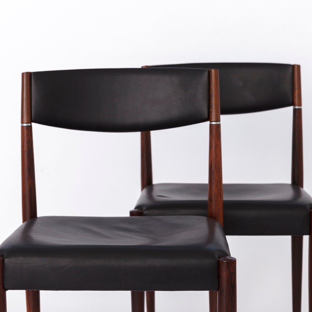 Pair of Vintage Rosewood Dining Chairs – German, 1960s – Original Black Leather, Restored