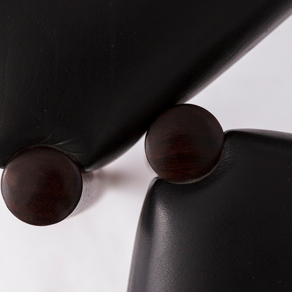 Seats and backs retain their original black leather, which has been cleaned and treated with quality leather care products.
