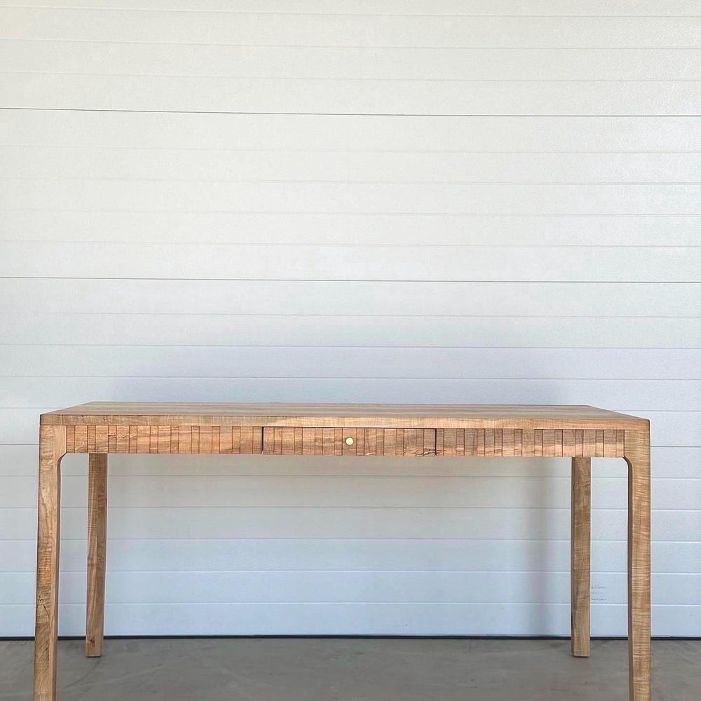 This desk embodies a modern, minimalist design that is timeless and sleek, drawing inspiration from the classic Parsons style.