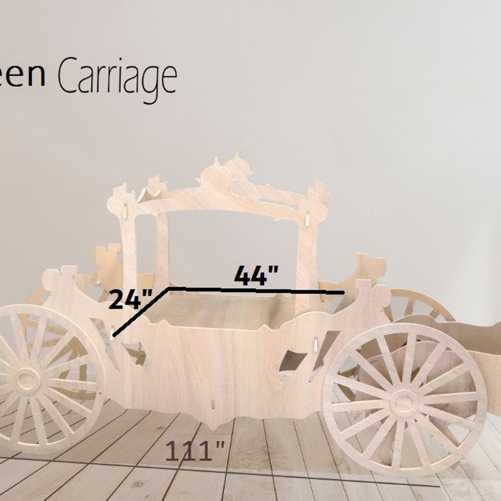 The tabletop for Queen Carriage is 44″x24″, and for the Princess carriage is 31″x16″