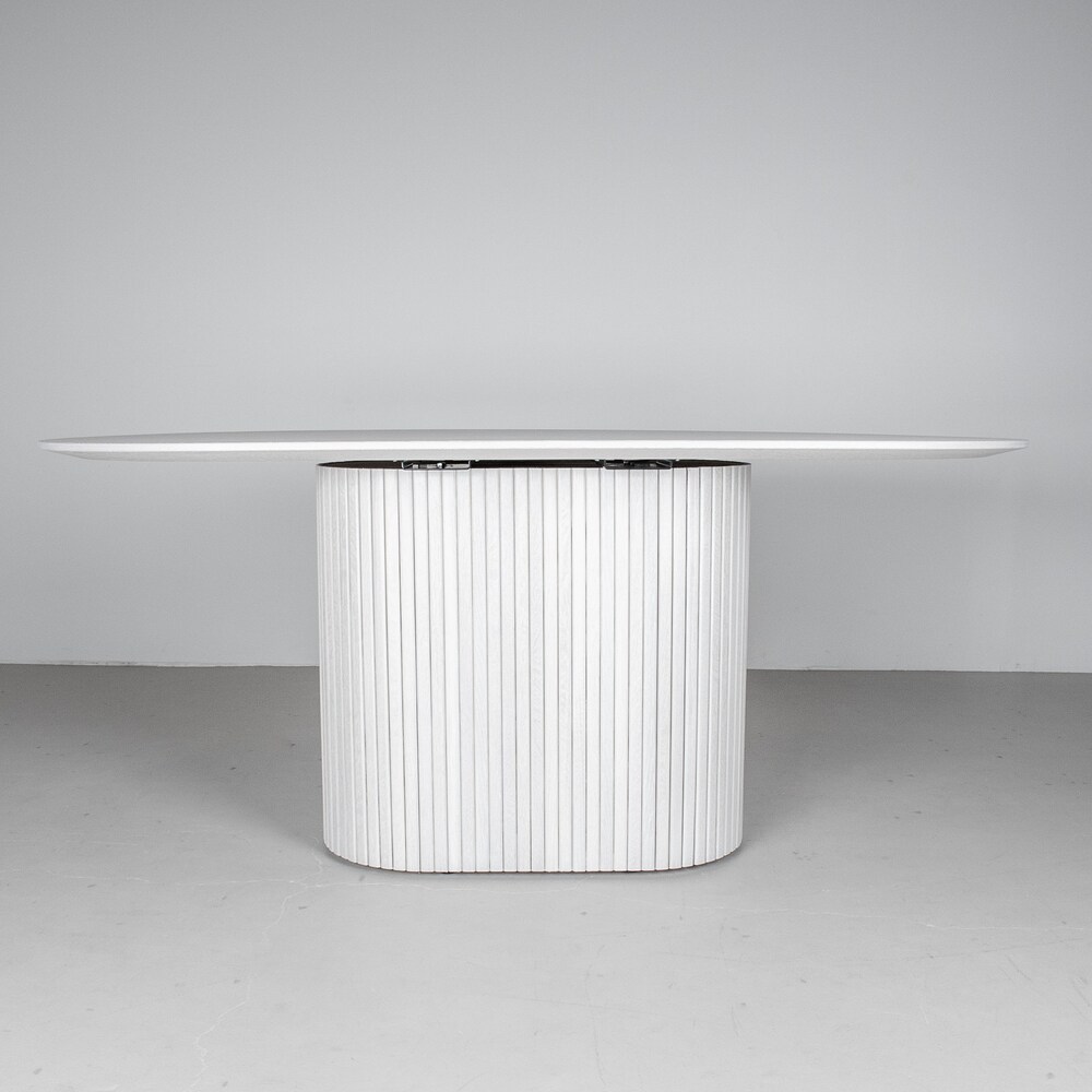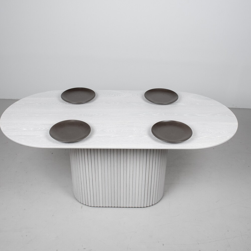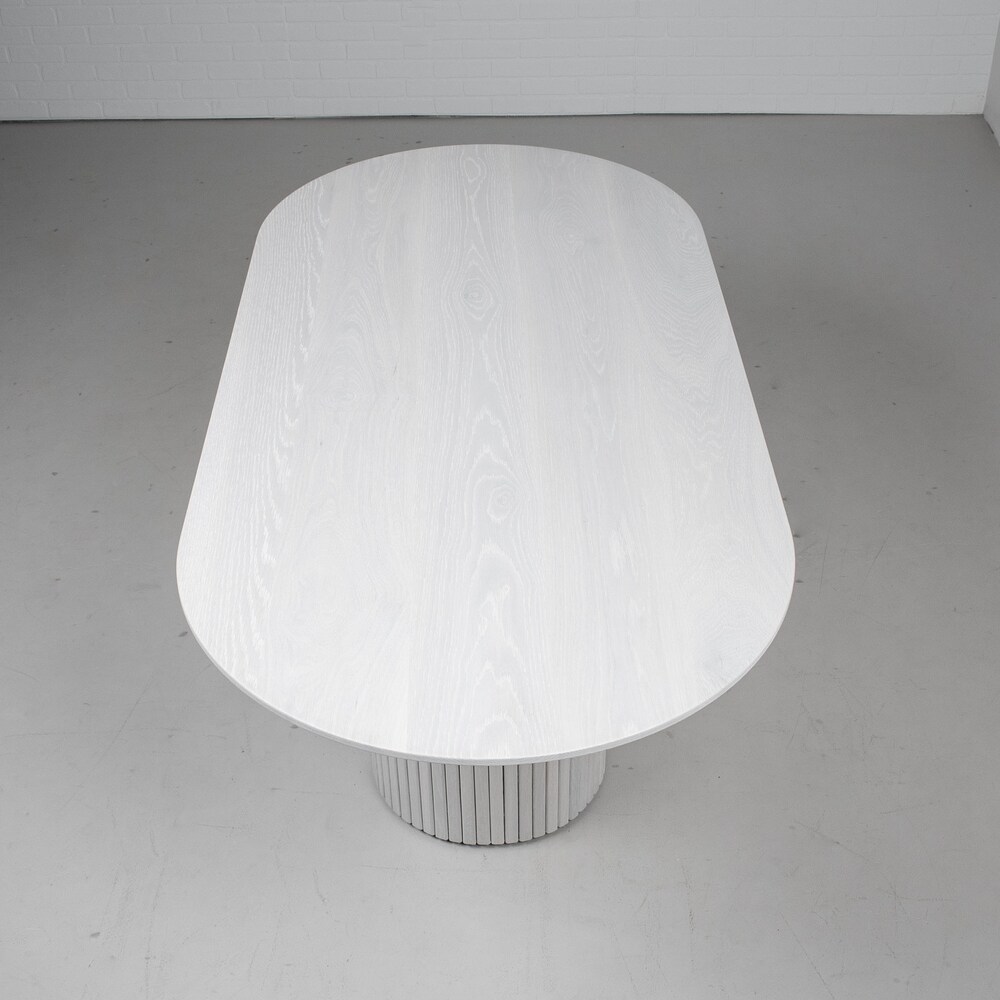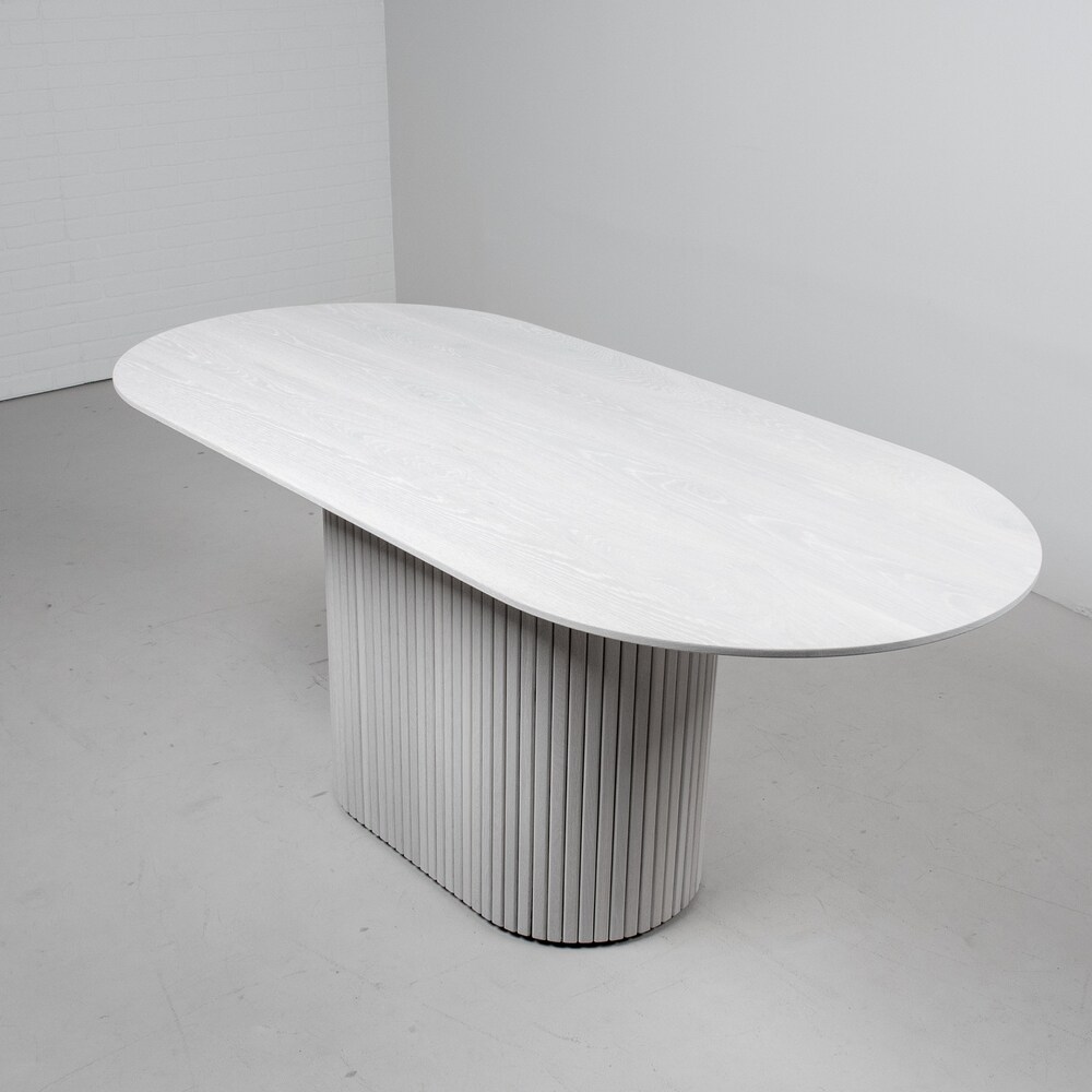 Pedestal Dining Table, White Oval Dining Table on Pedestal Base, Modern White Wood Table on Fluted Table Base, Oval Pedestal Table in White