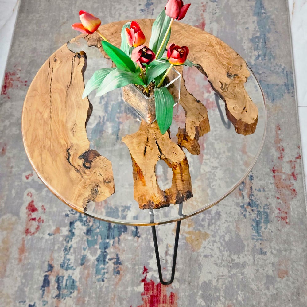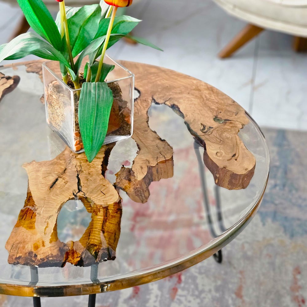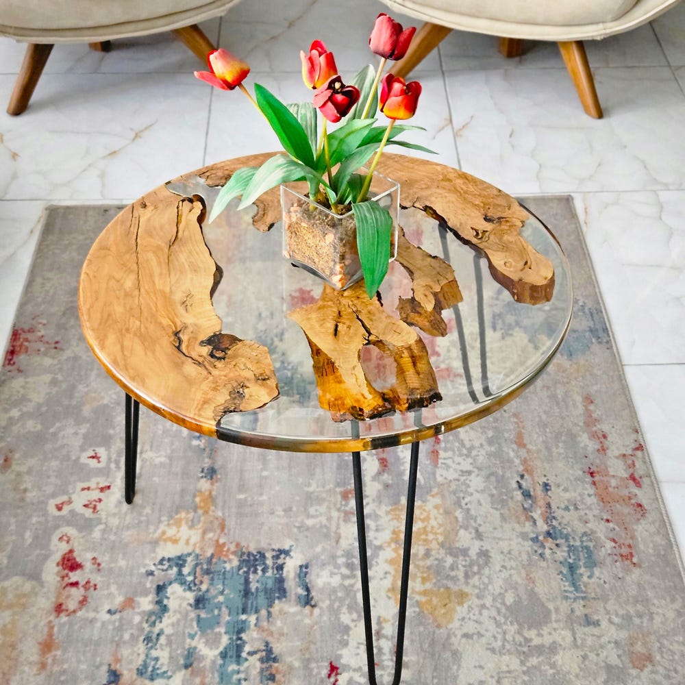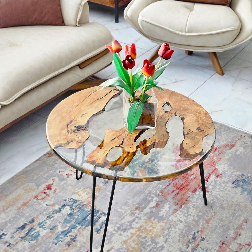 Personalized Epoxy Resin Coffee Table from Walnut Wood, Epoxy Coffee Table, Round Live Edge Resin Coffee Table, Round Epoxy Coffee Table