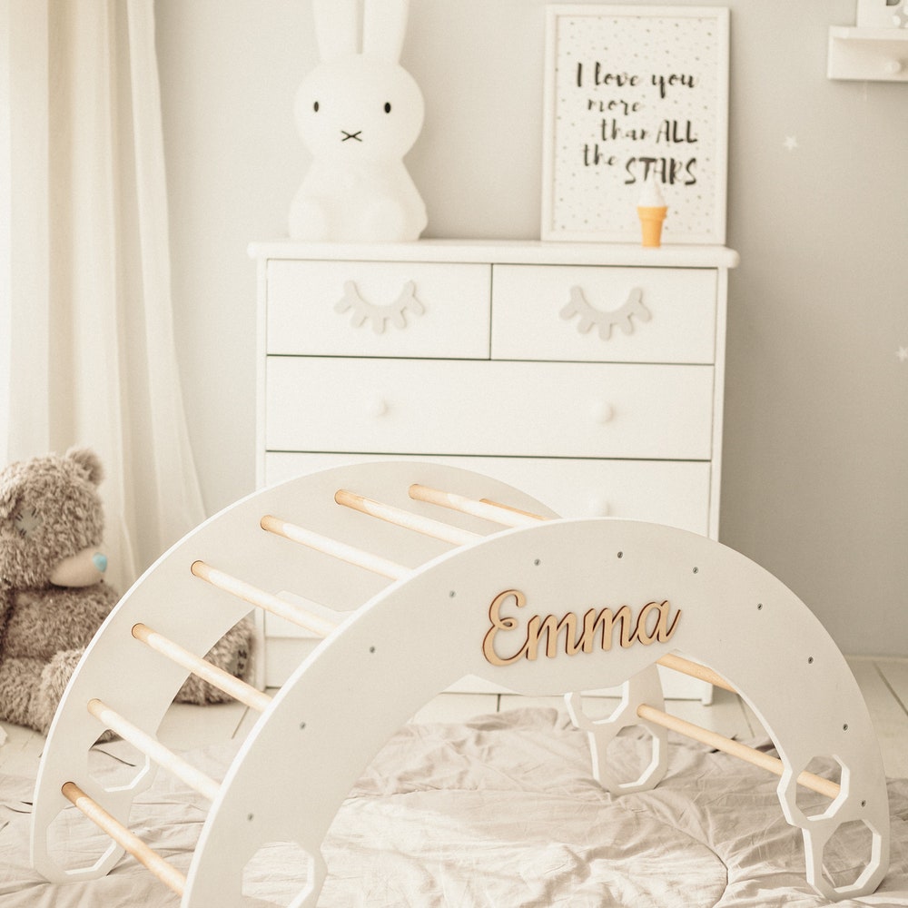 Personalized Toddler Montessori furniture, Climbing arch, First birthday gift Nursery decor Kids balance board Baby climber
