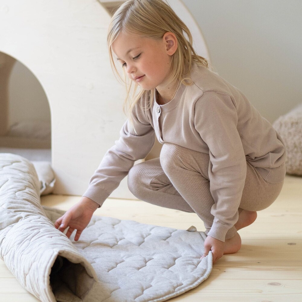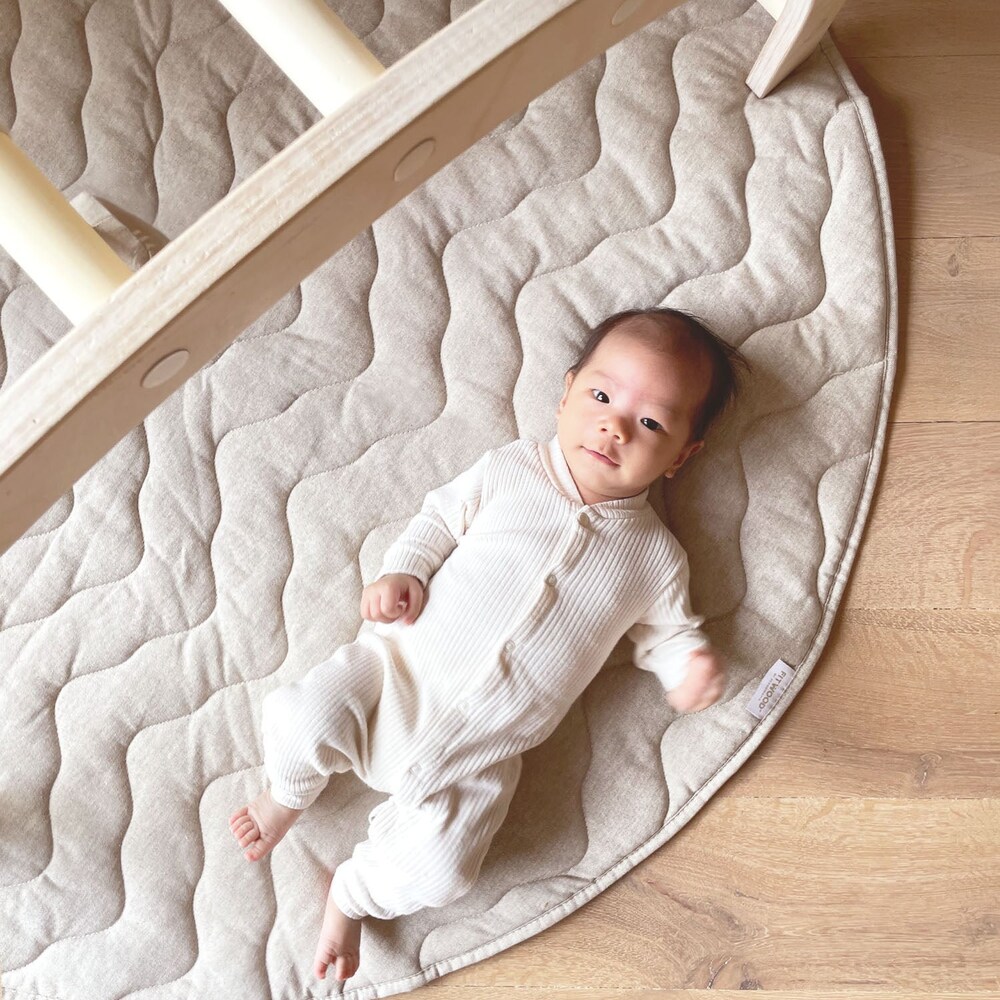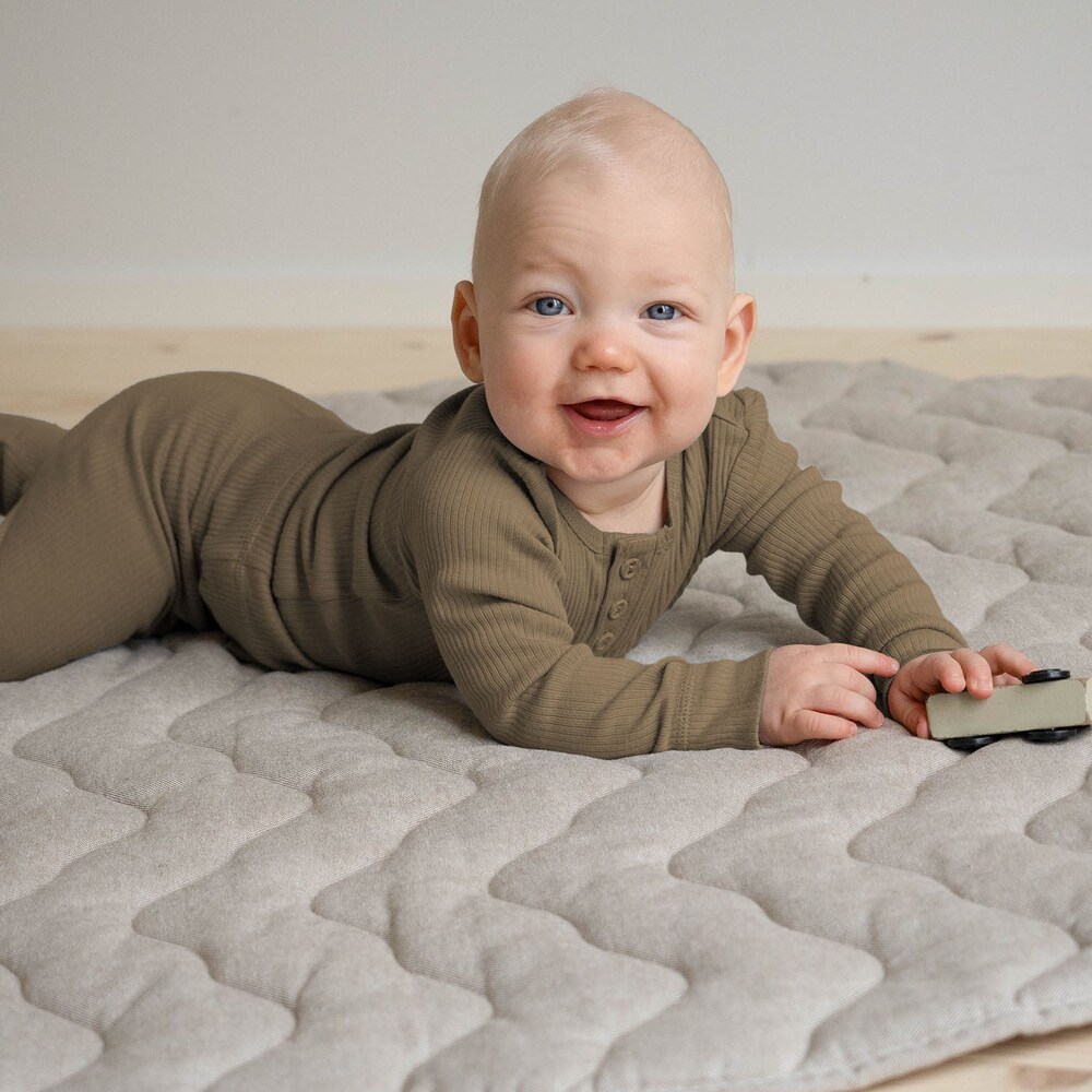 PILVI play mat is the coziest companion for your little one’s first adventures. Crafted from durable, non-toxic, premium materials, our lightly padded mat provides a safe haven for practicing important skills such as tummy time, crawling, rolling, and sitting up.