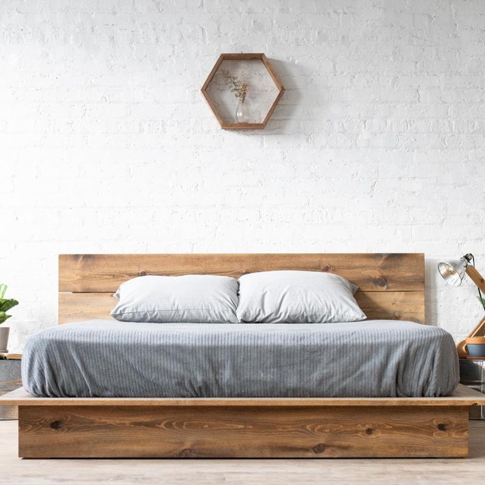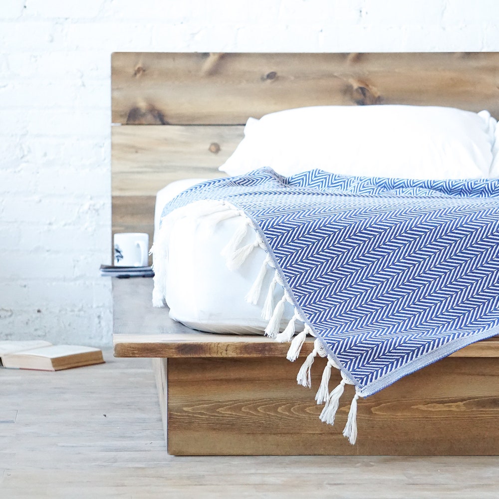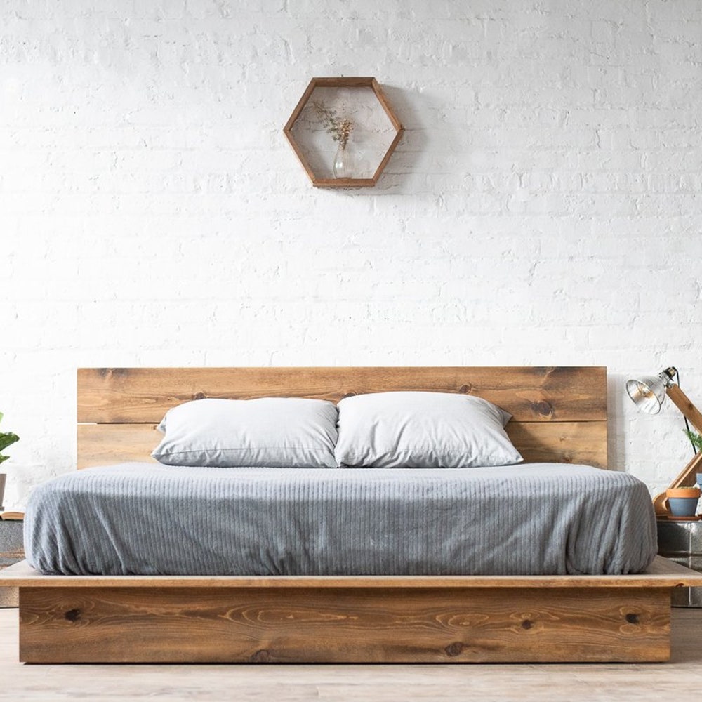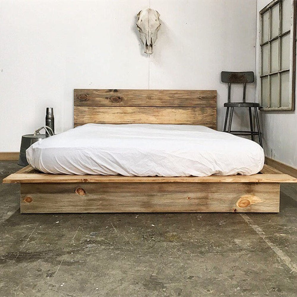 This modern rustic platform bed is perfect for any home, from country cottage to city loft. This platform bed and headboard is made of solid, carefully selected planks. We locally source all the materials used to hand make this epic bed. The natural grain gives you the warmth and vibes of the wild, while the sleek low profile design keeps things just enough modern.