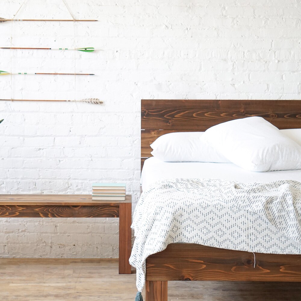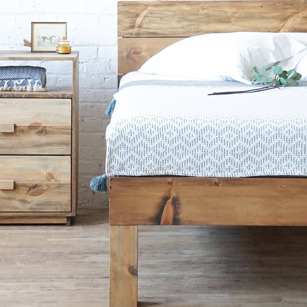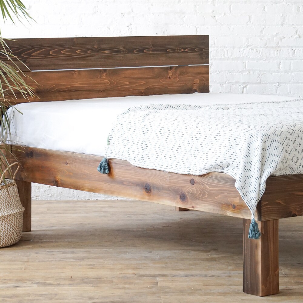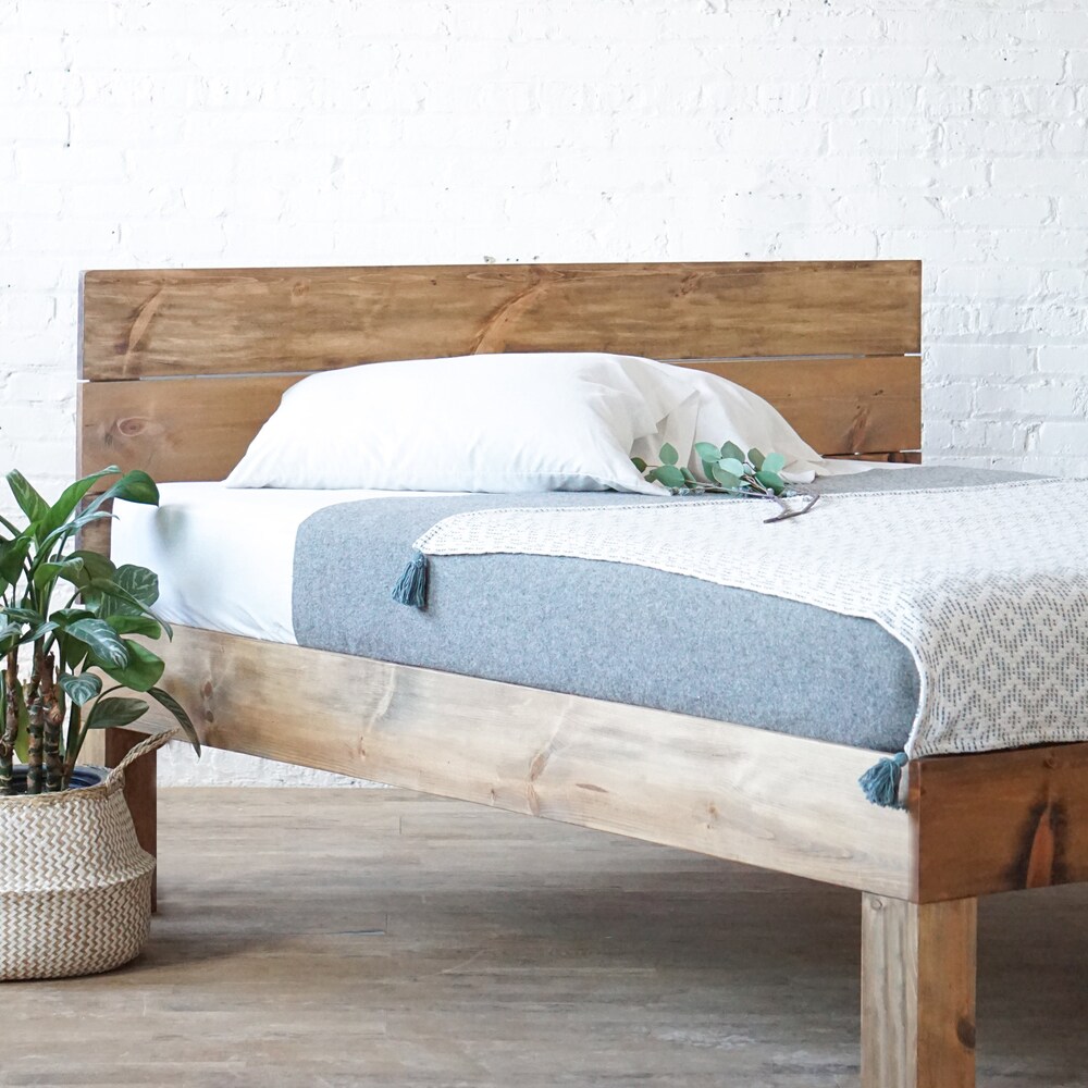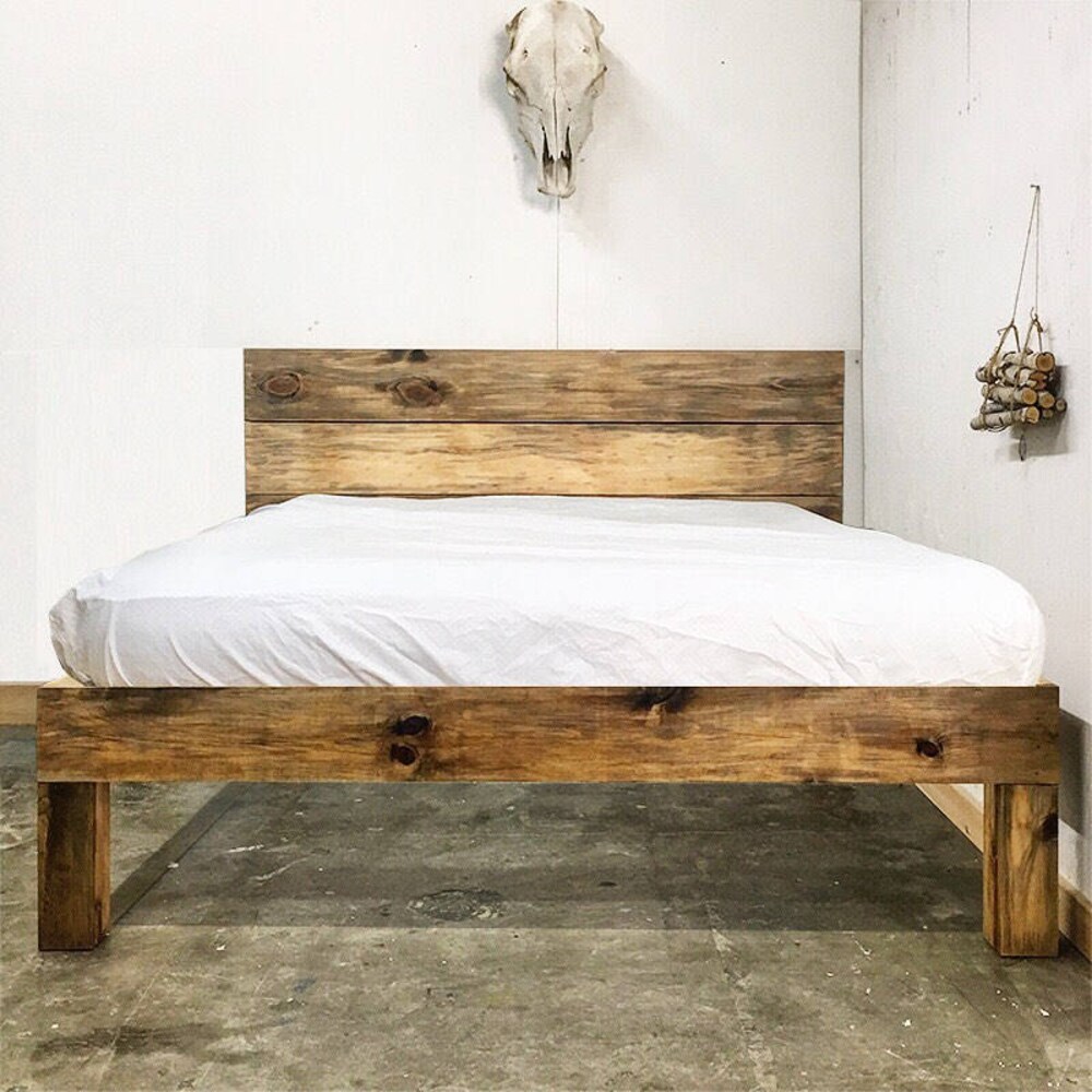 Plank Standing Platform – Rustic Modern Platform Bed Frame and Headboard – Solid Wood – Handmade in USA