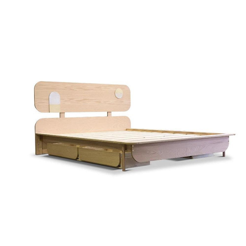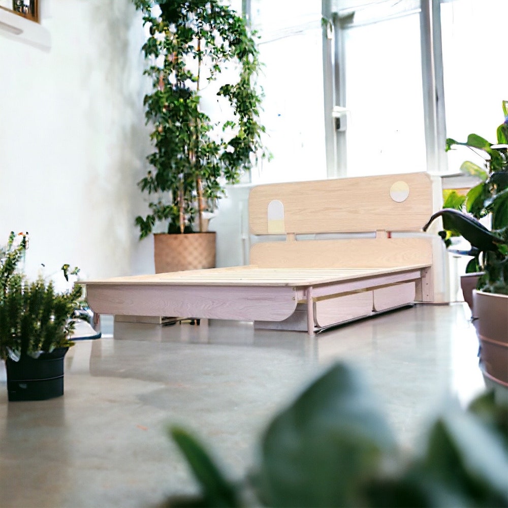 Add a touch of artistic elegance to your bedroom with this platform bed. Featuring a unique combination of red oak and buff speckled clay with an ivory glaze, this bed frame is ideal for enhancing aesthetic room decor and makes a thoughtful wedding gift
