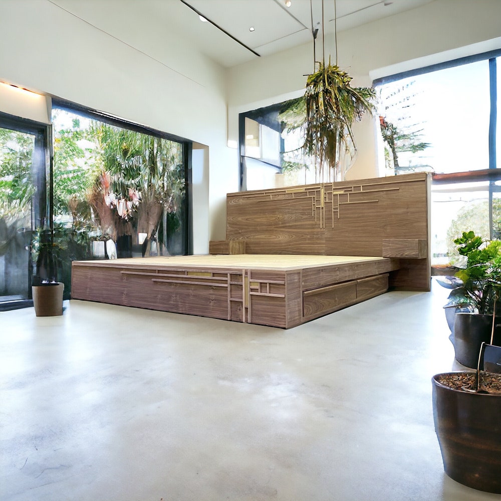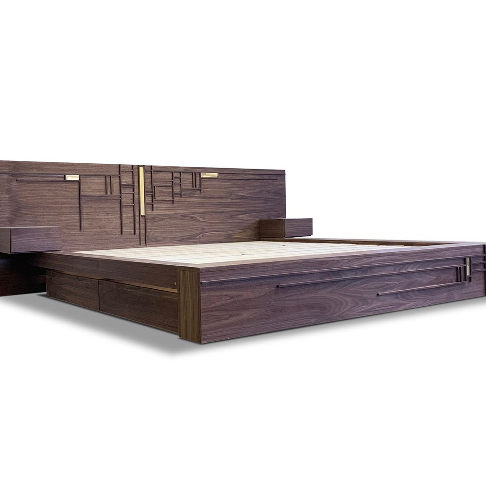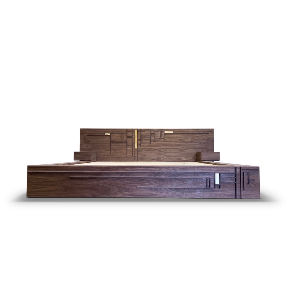 Bed Frame King Gift for Couple – Walnut Patchwork Floor Bed for Bedroom Decor – Platform Bed Frame Handmade Furniture – Queen Bed Frame