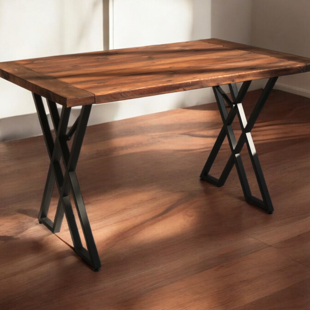 Premium Detailed Wooden Rustic Dining Table with Metal Legs, Solid Wood Table, Farmhouse Kitchen Table, Coffe Table, Garden & Patio Table.