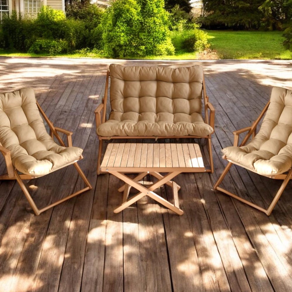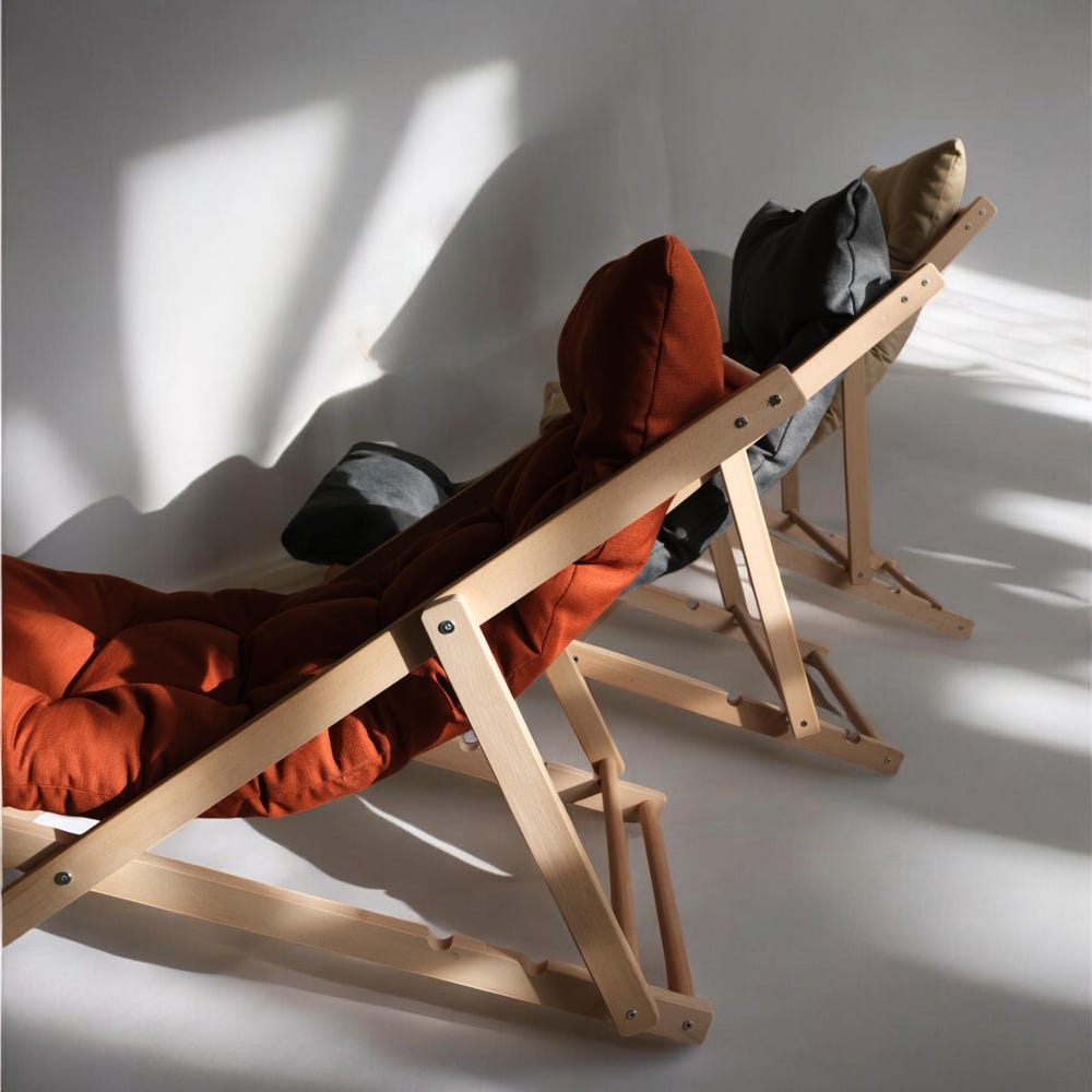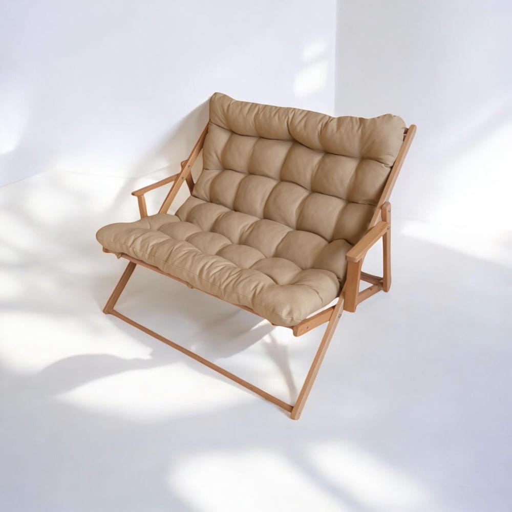 🌟 Introducing our handcrafted Double Sized Wooden Sun Lounger, the perfect addition to your garden, patio, or poolside. Designed for ultimate relaxation, this elegant adjustable chaise lounge chair masterfully combines functionality with a touch of rustic charm. Our foldable deck chair is your go-to for outdoor comfort and style. The sturdy wooden frame is complemented by a plush, water-repellent cushion, making it ideal for lounging by the pool or soaking up the sun on your patio.
