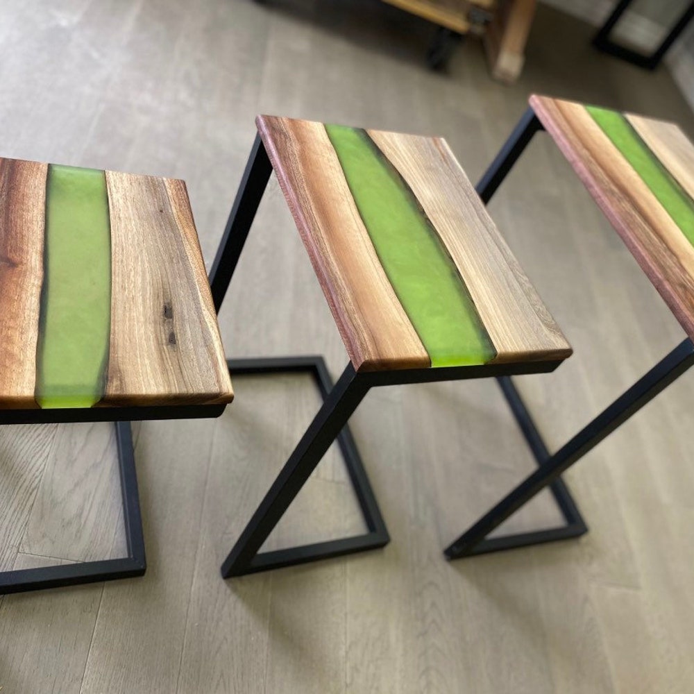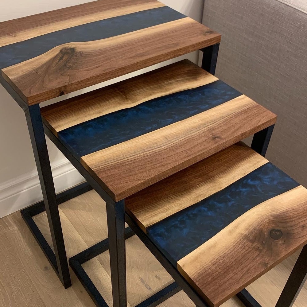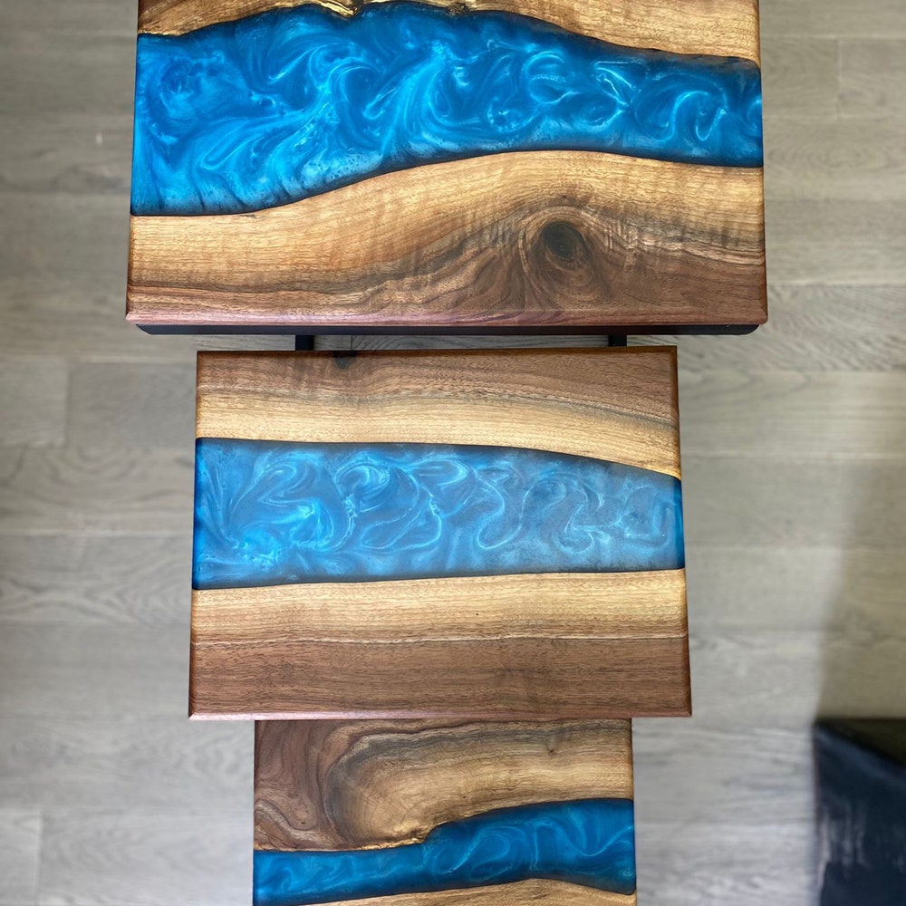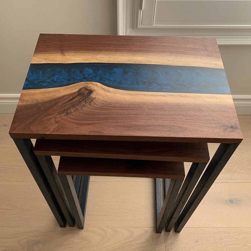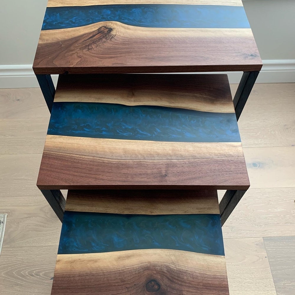 Good Wood Brothers Custom Made Black Walnut Epoxy River Tables are carefully handcrafted and make for a beautiful centerpiece in any room or office space. The rein river look and feel offers you a style that fills a room with elegance, warmth and comfort.