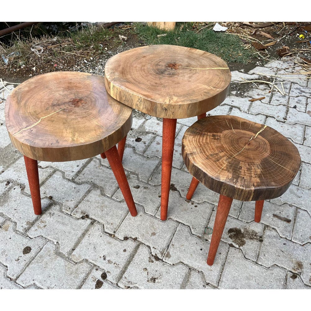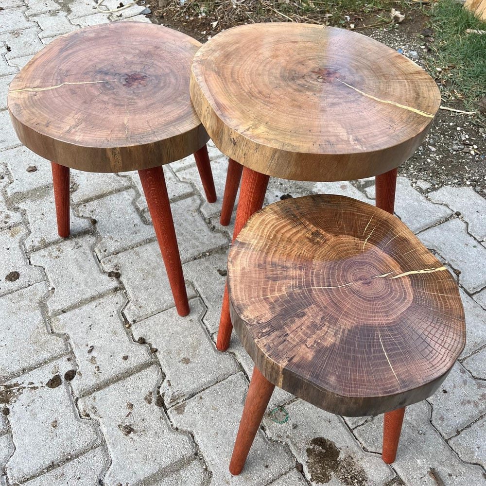 Primitive Coffee Table, Natural Wood Coffee Table, Walnut Coffee Table Set Of 3, Round Wood Coffee Table, Handmade Furniture Coffee Table