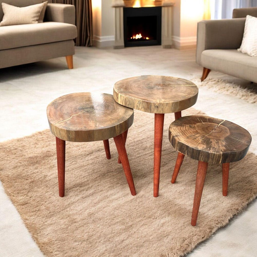 Add a touch of rustic charm and natural elegance to your living space with this stunning Primitive Coffee Table set. Crafted from high-quality natural wood, this Round Coffee Table Set of 3 is perfect for any home that celebrates unique, handmade decor. Each table is carefully crafted with precision, showcasing the beauty of natural grains and textures. Whether you’re updating your living room or searching for a thoughtful gift, this set of round wood coffee tables combines style and functionality in a way that will elevate any room.