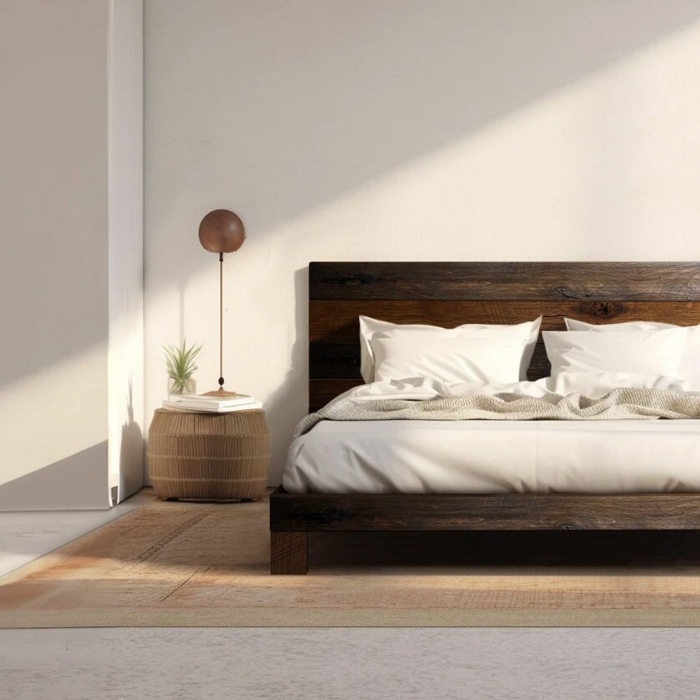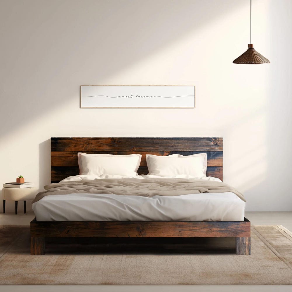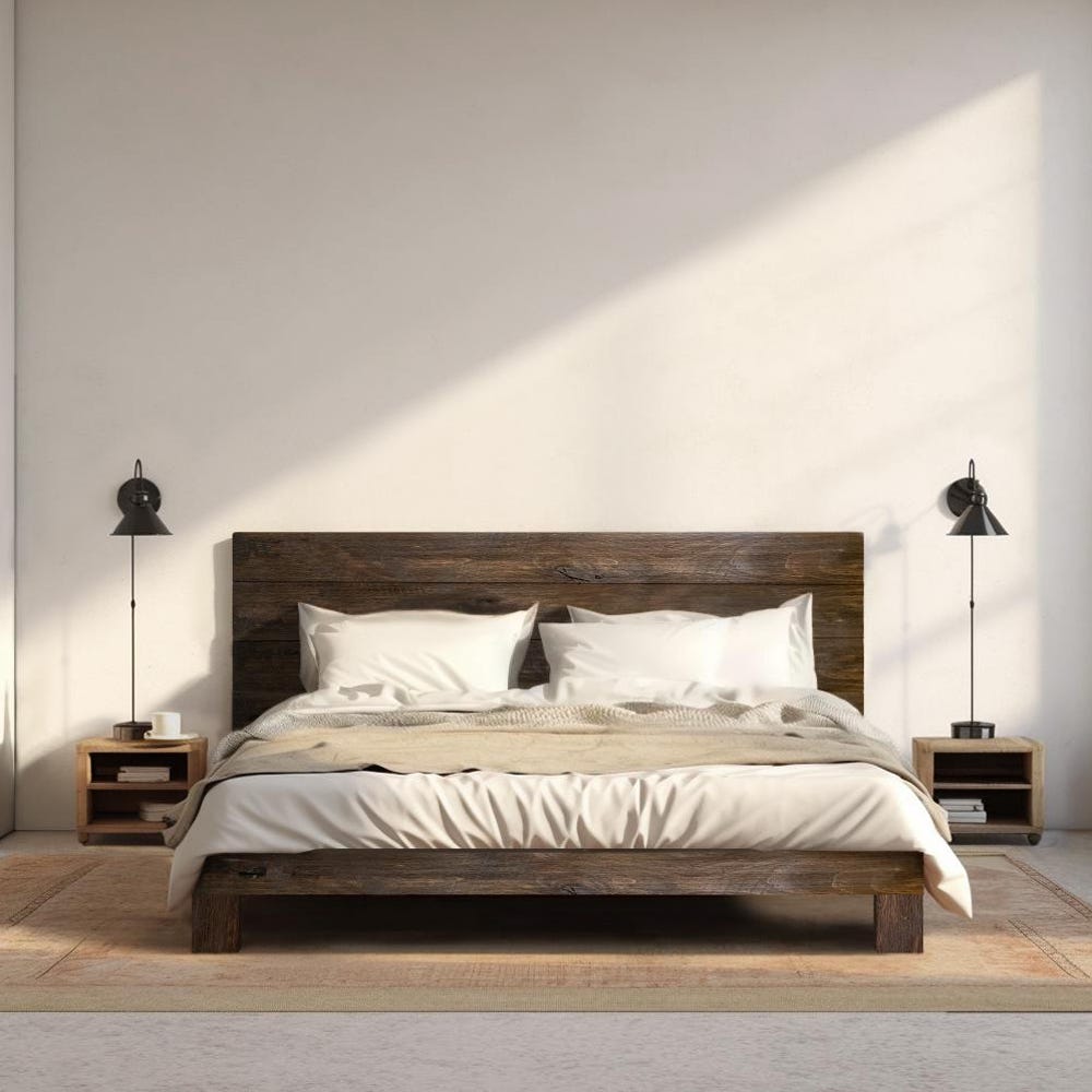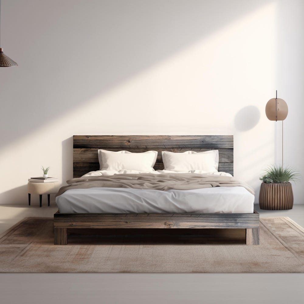 Bed Frame Reclaimed Furniture – “The Wright” Platform Bed for Room Decor – Wooden Bed Frame for New Home Gift – Queen Bed Frame