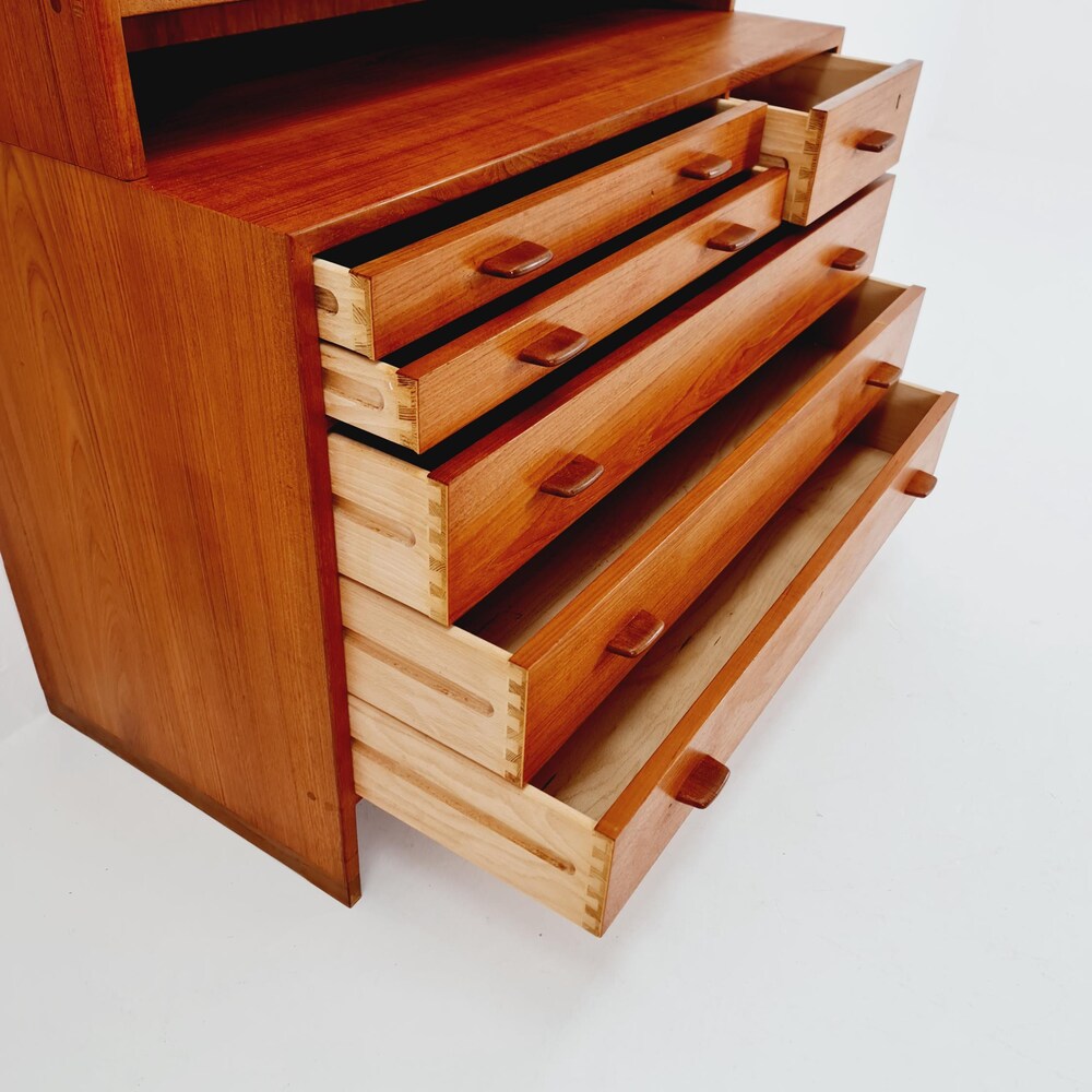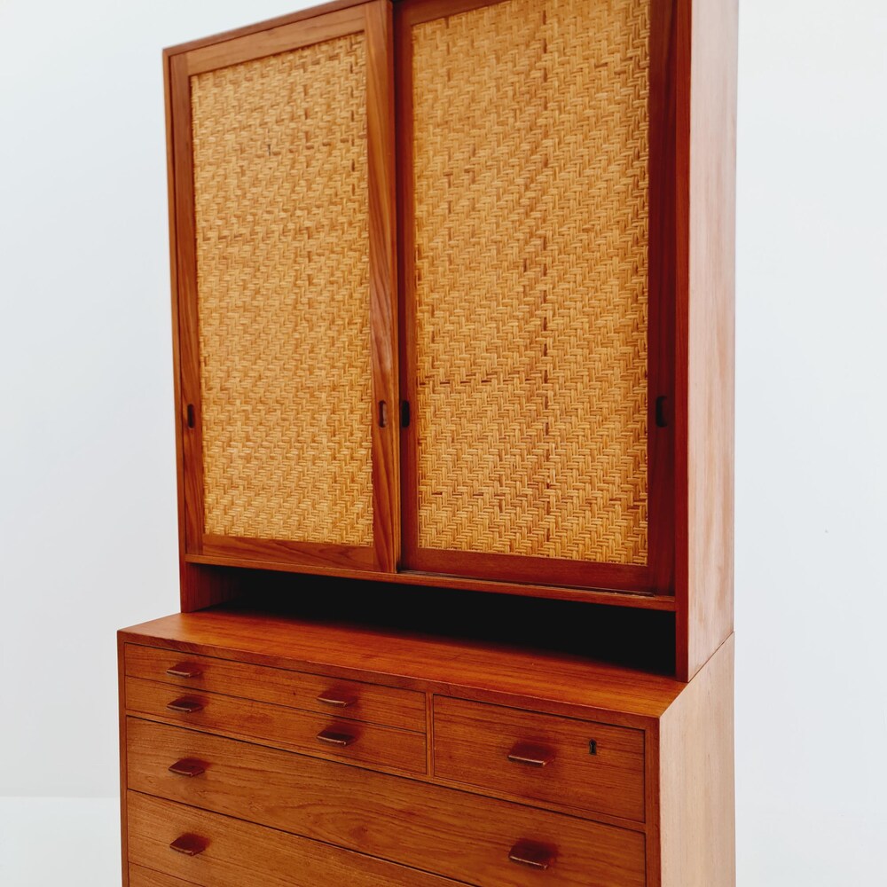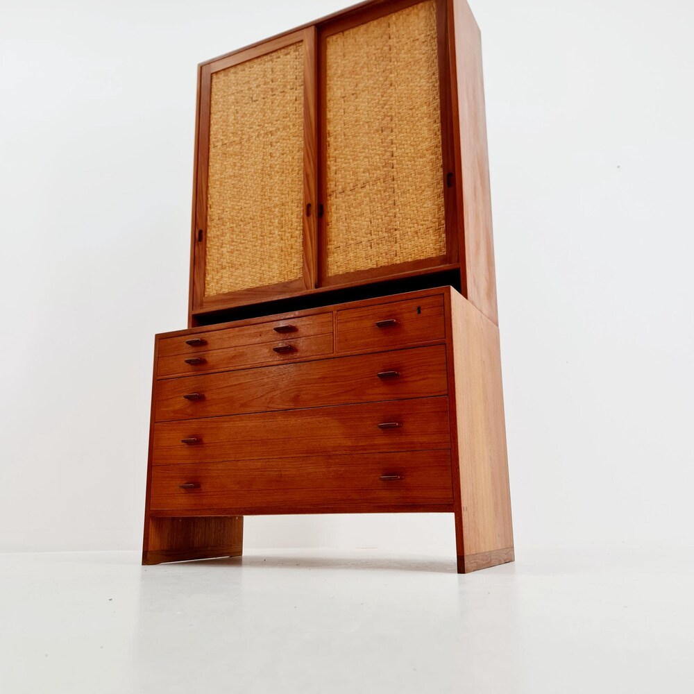 Rare Mid century Modern Danish teak highboard chest of drawers by Hans Wegner for RY Möbler, 1960s2 partsIt is in good vintage condition, however, as with all vintage items some minor wear marks should be expected. Design year: 1960s Dimensions: : 33— 49 D x 100 W x 72 — 181 H cm Please inquiry […]