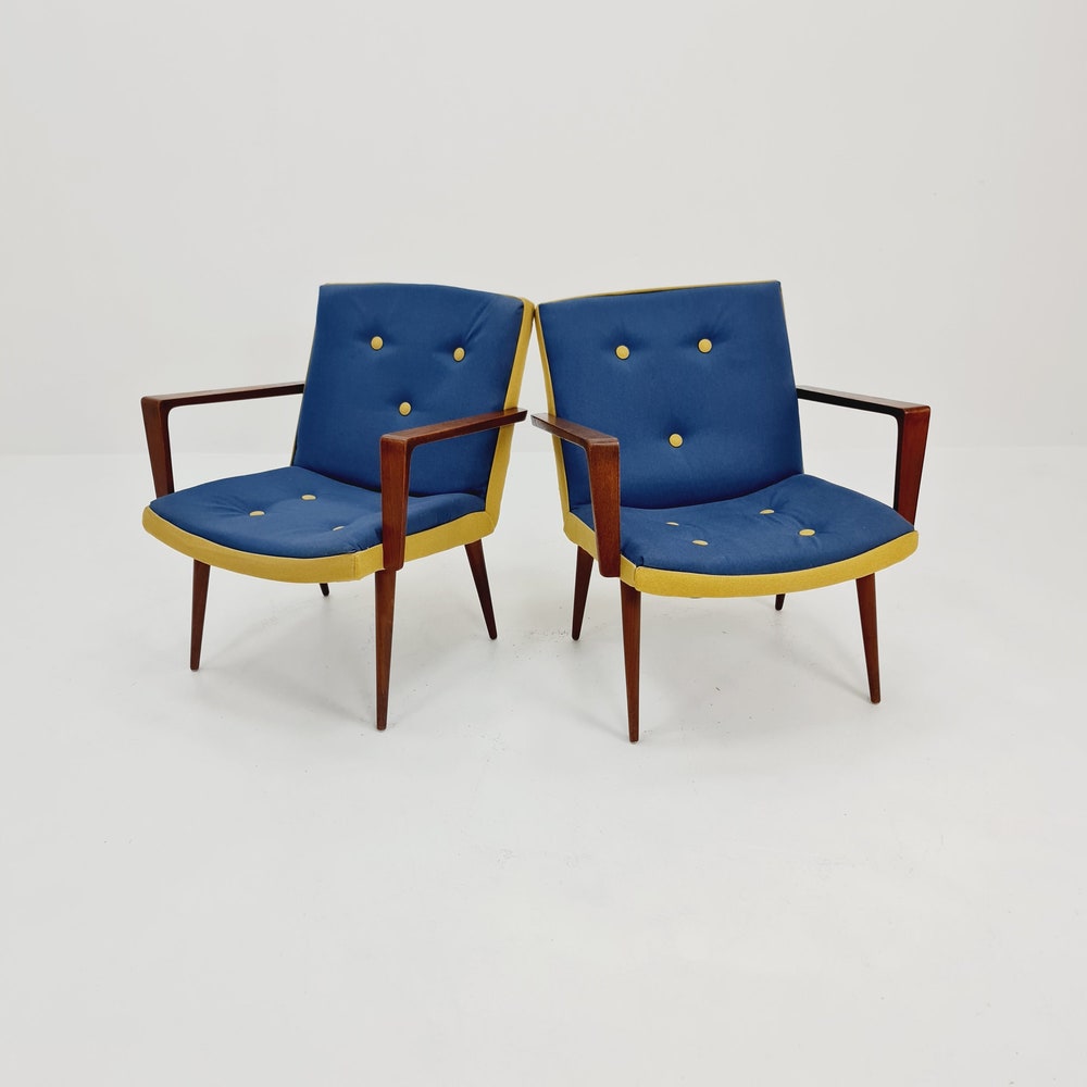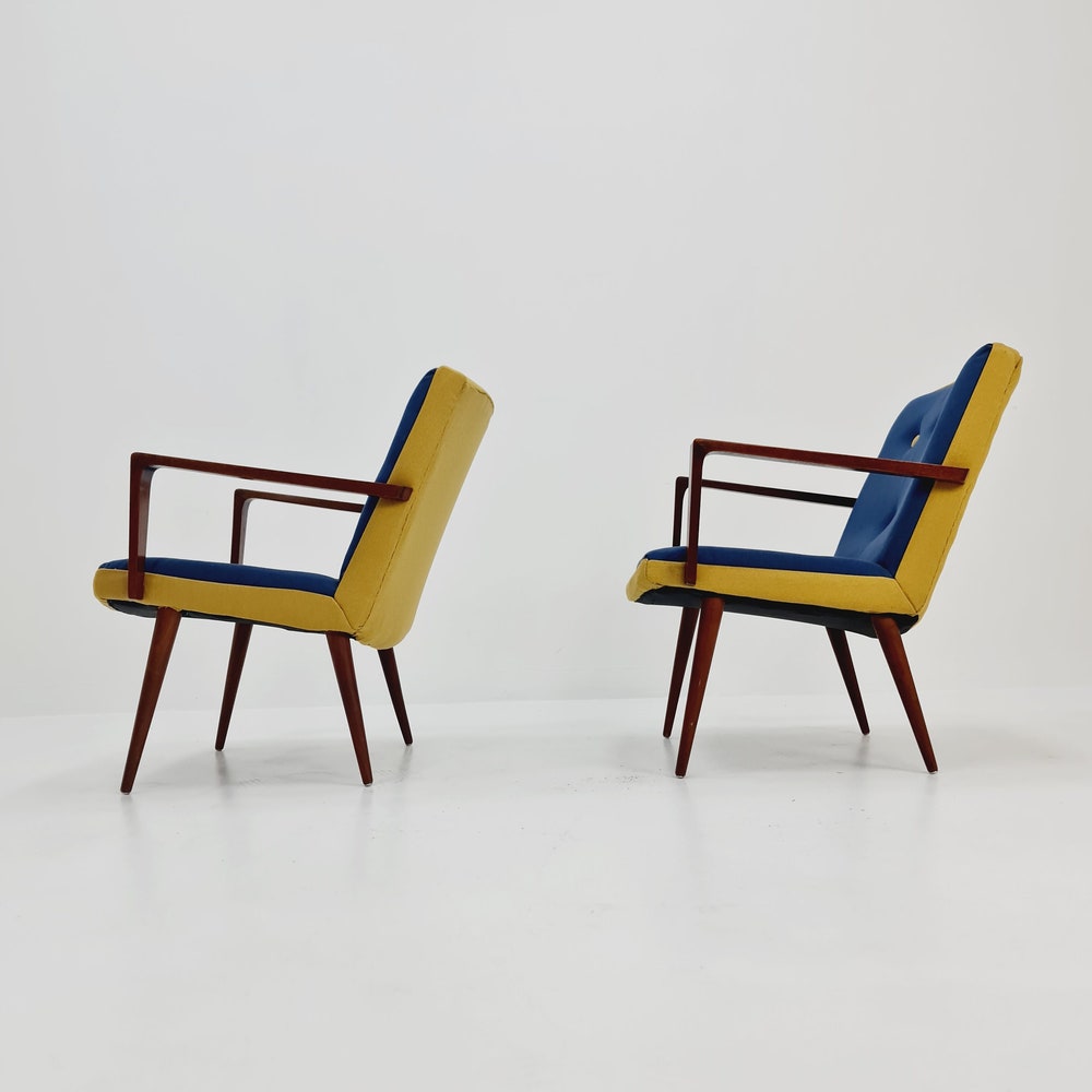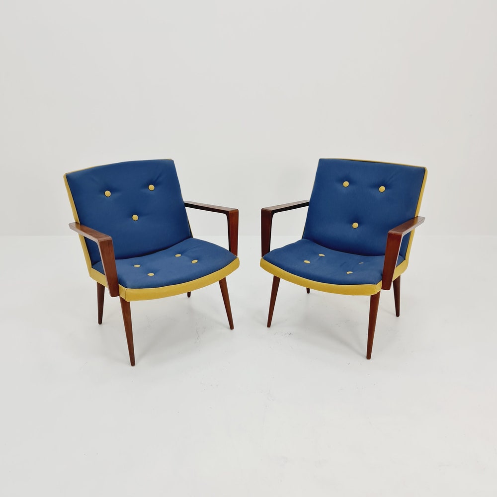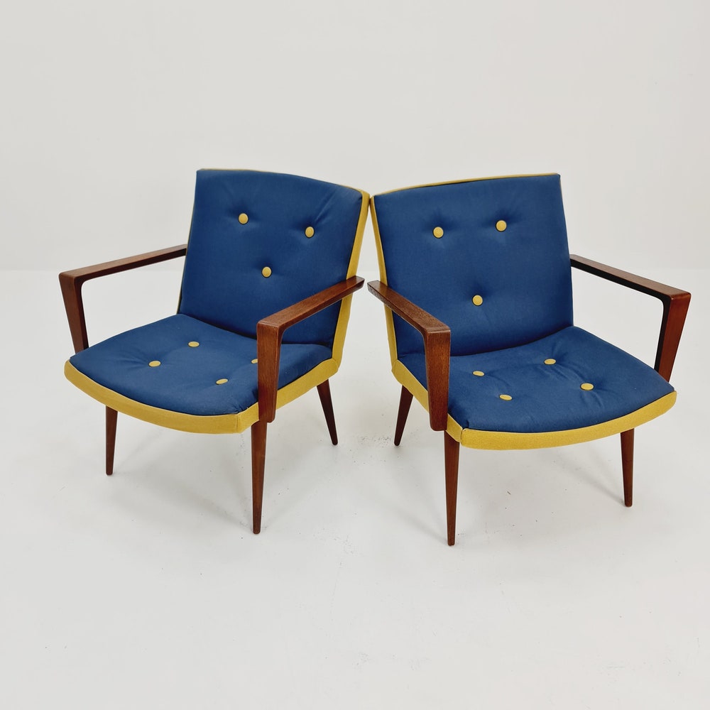 Rare Midcentury German Teak Set of 2 club lounge chairs, 1950s
