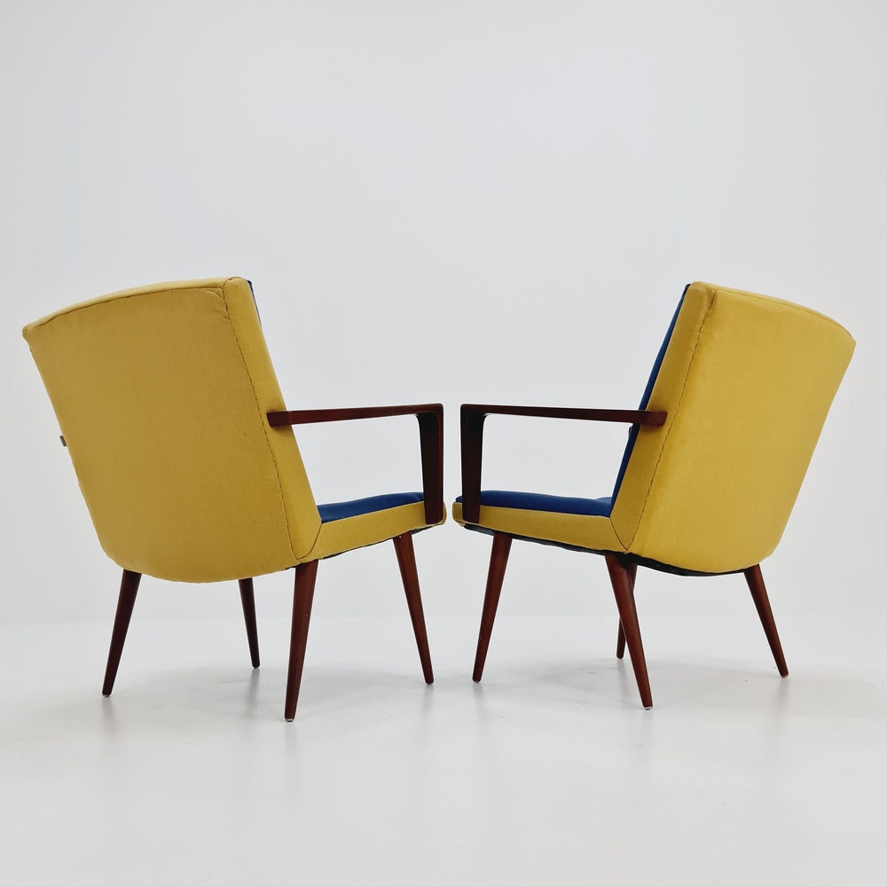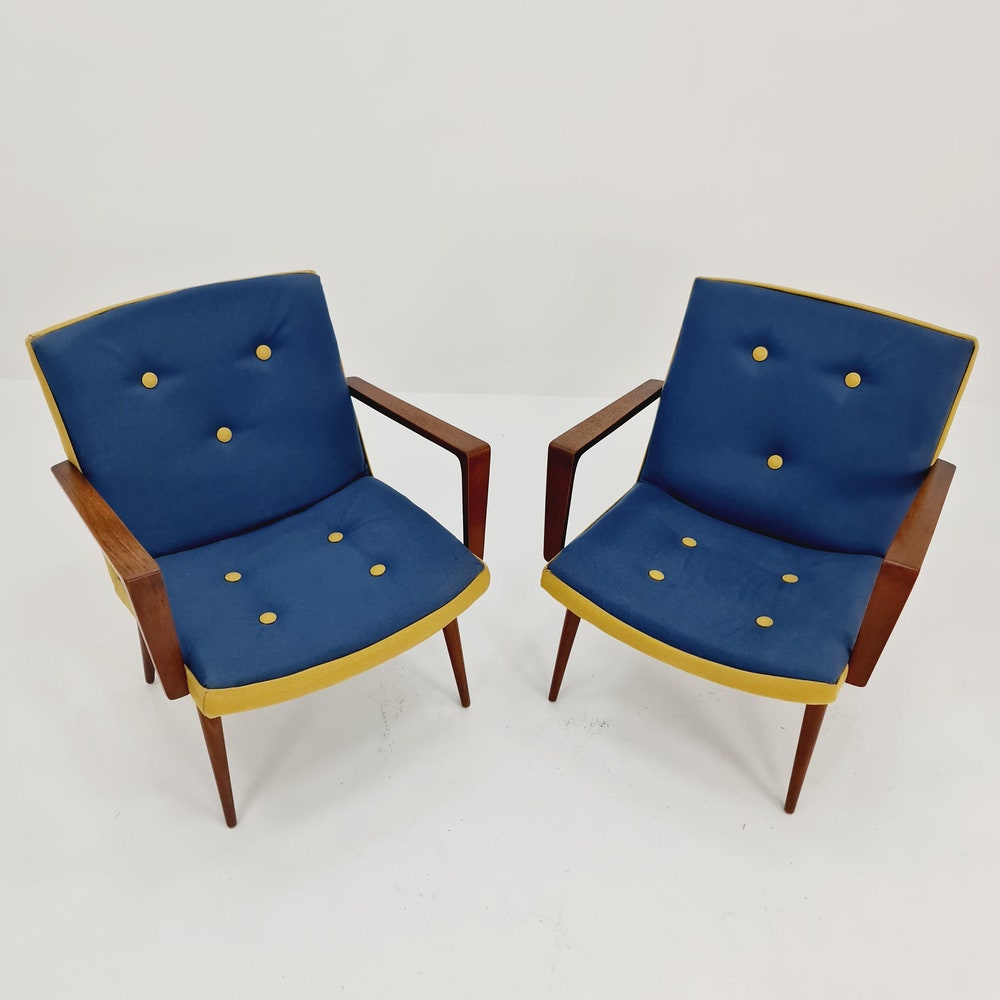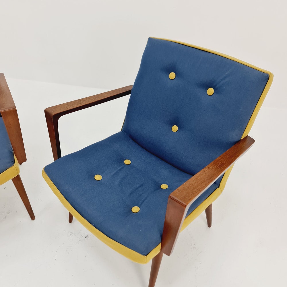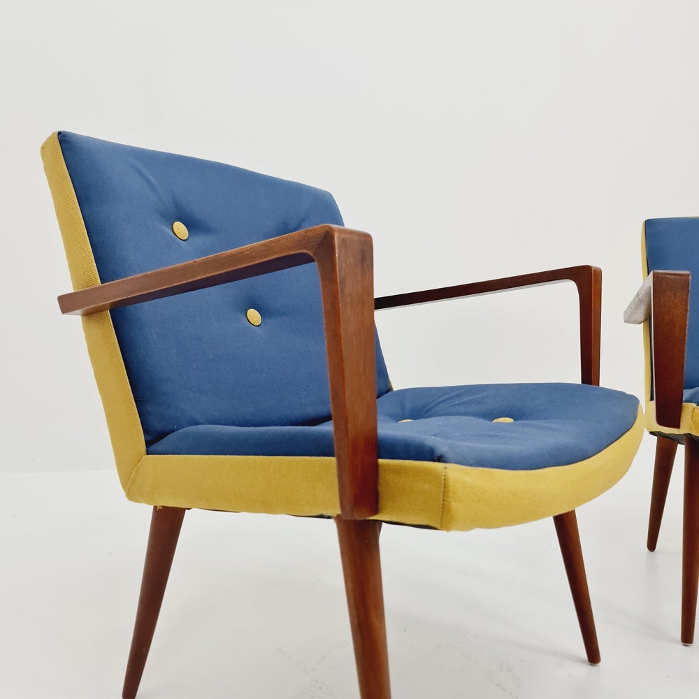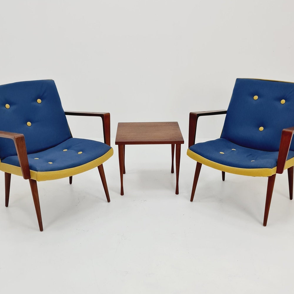 Rare Midcentury German Teak Set of 2 club lounge chairs, 1950s