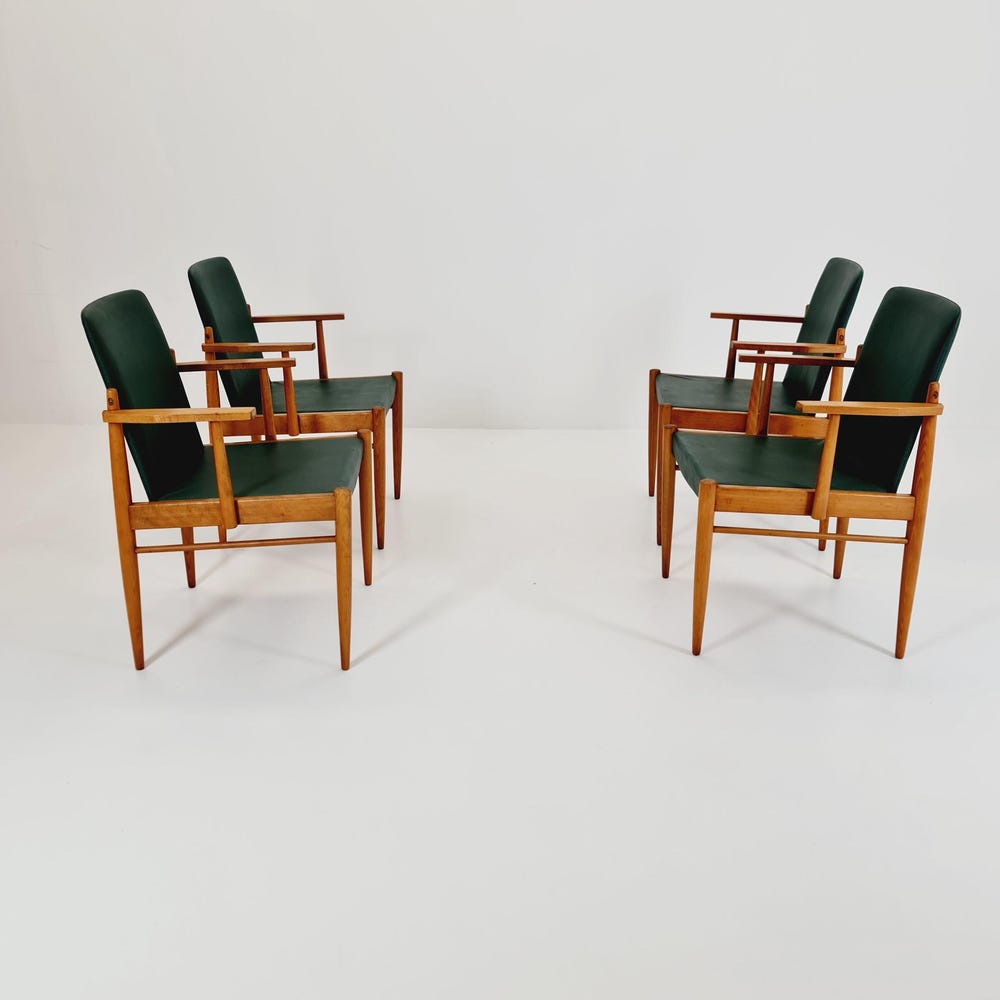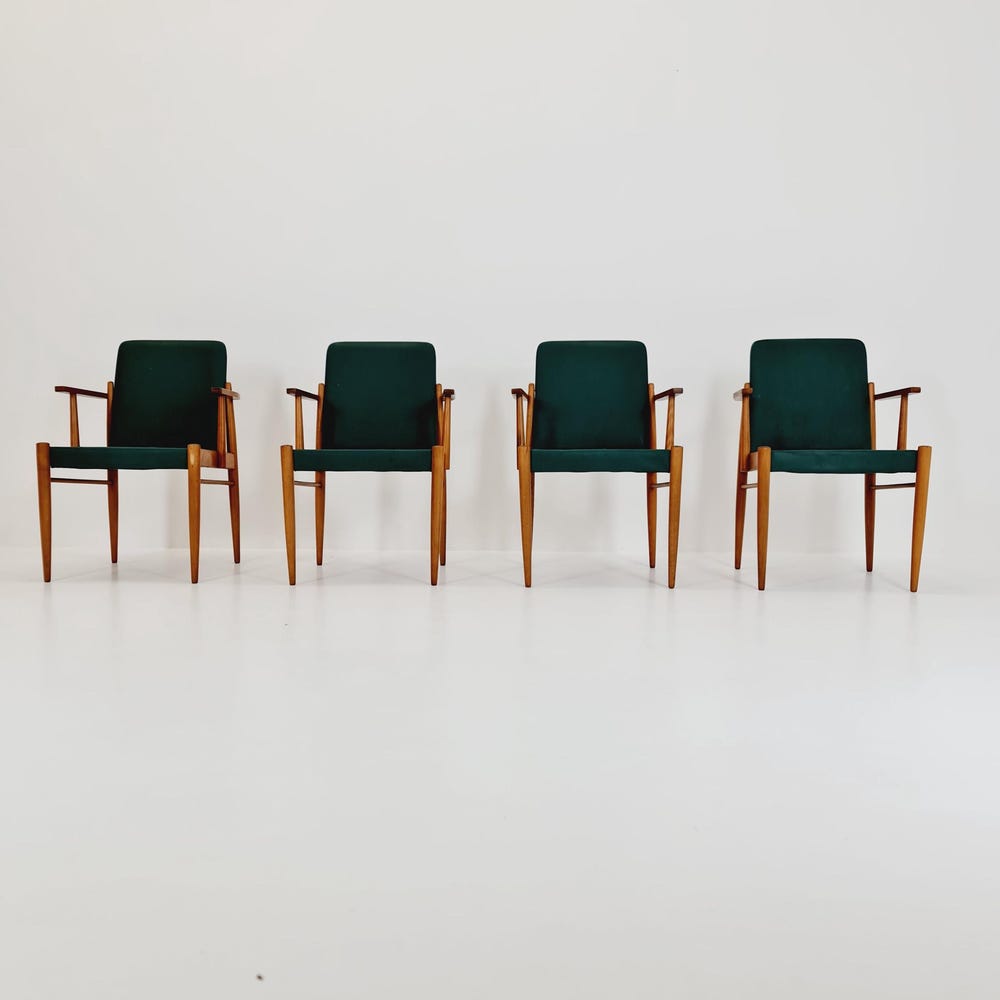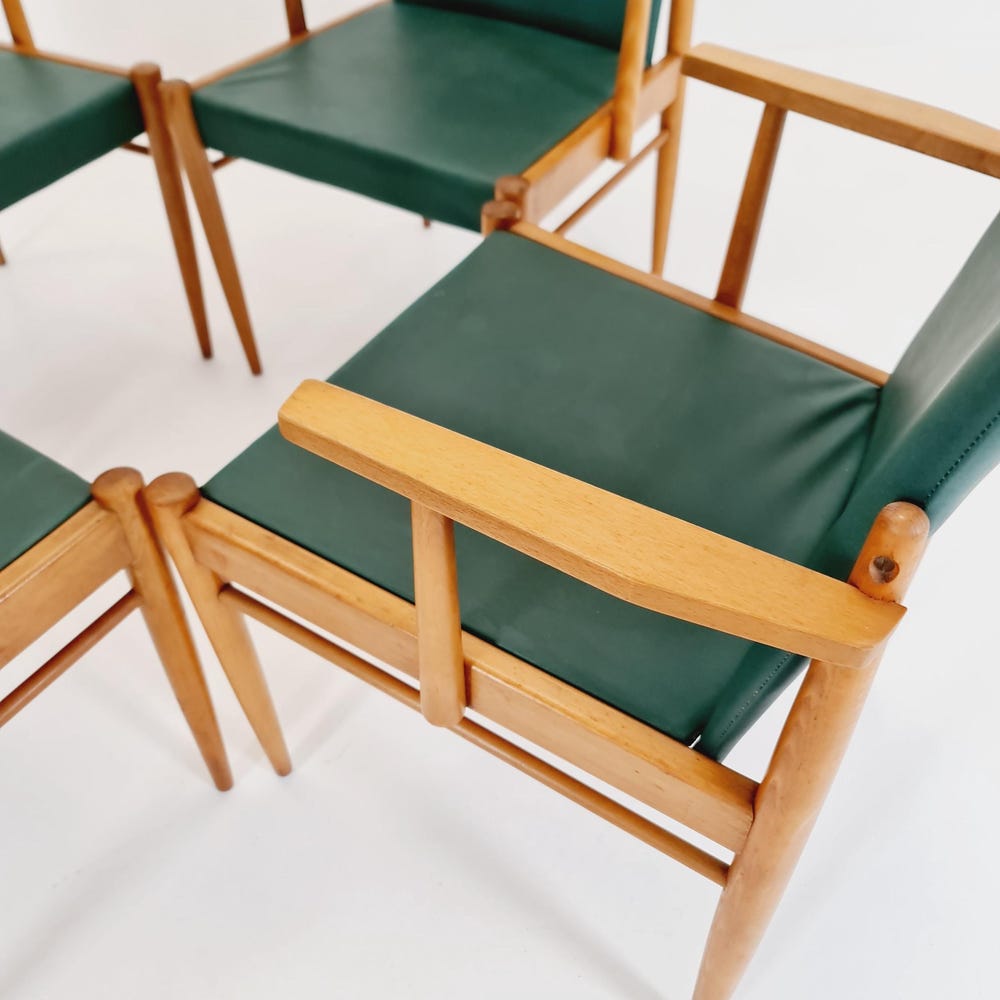 Rare Vintage Midcentury German beech Armchair set of 4, 1950s