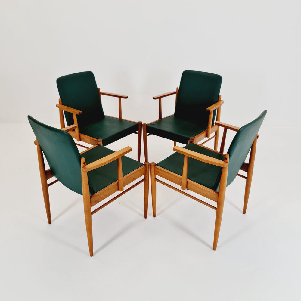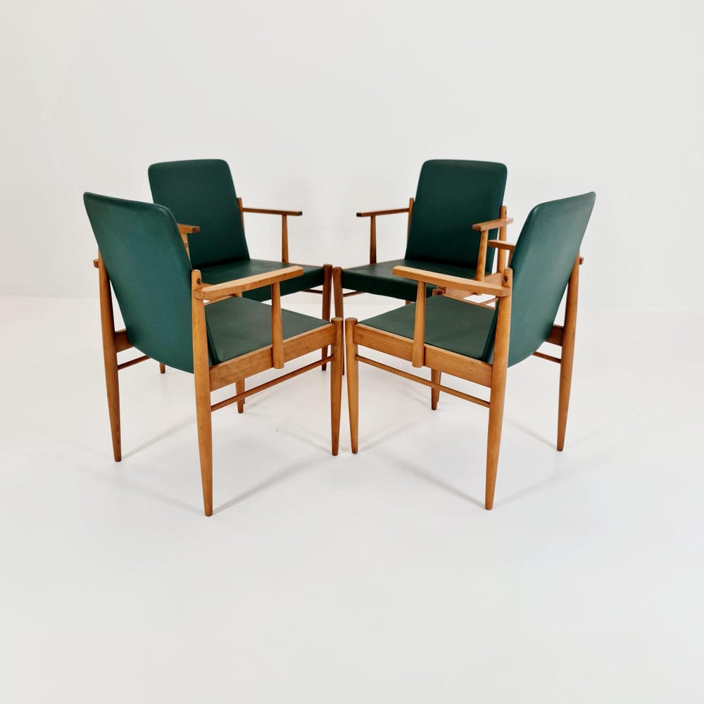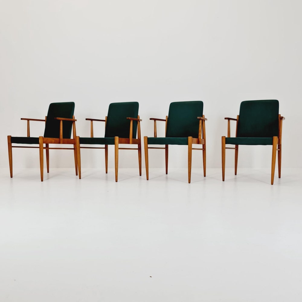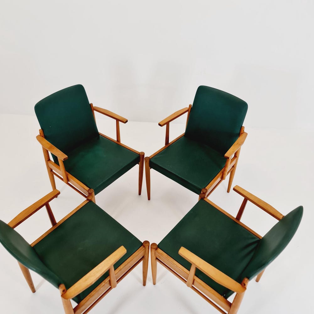 Rare Vintage Midcentury German beech Armchair set of 4, 1950s