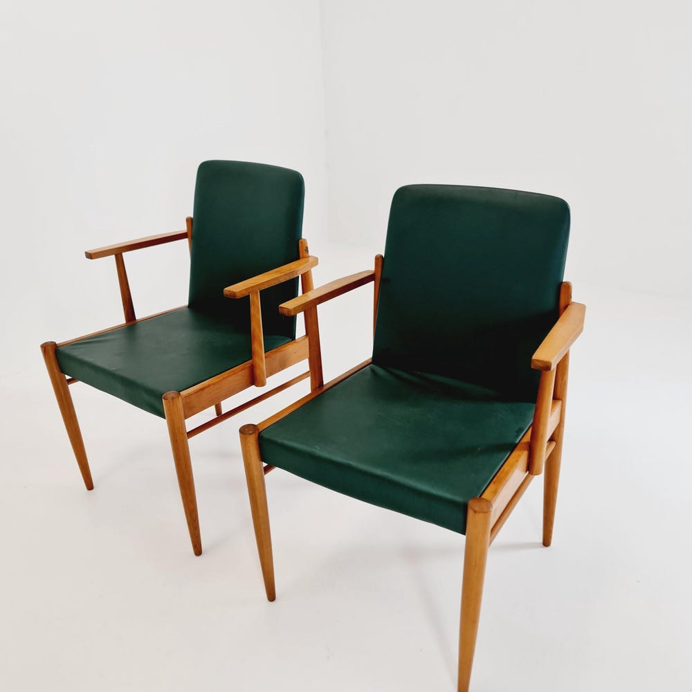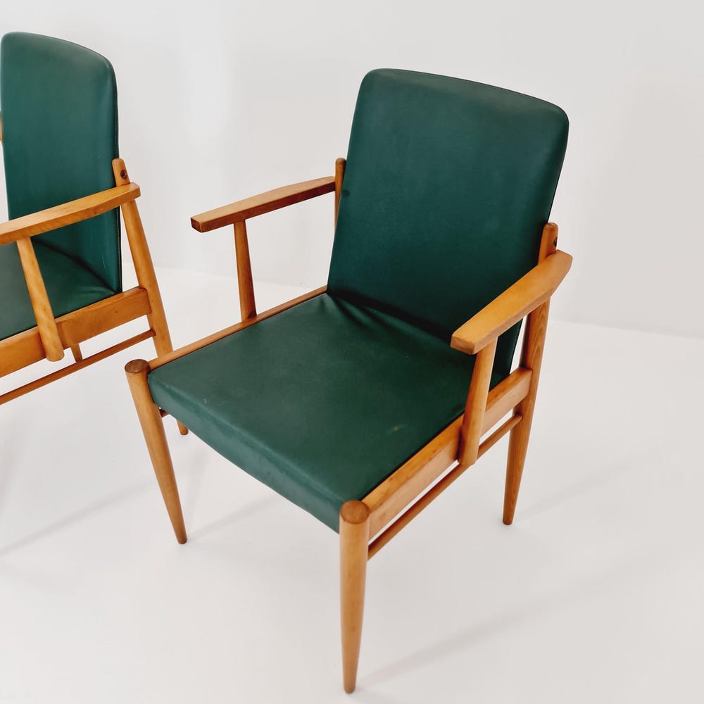 Rare Vintage Midcentury German beech Armchair set of 4, 1950s The chair frame are made from solid Beech and leatherette in good vintage condition, however, as with all vintage items some minor wear marks should be expected. Dimension:Width: 55 cmHeight: 83 cmSeat depth: 46 cmSeat Height: 44 cm Please inquiry for prices to your country […]