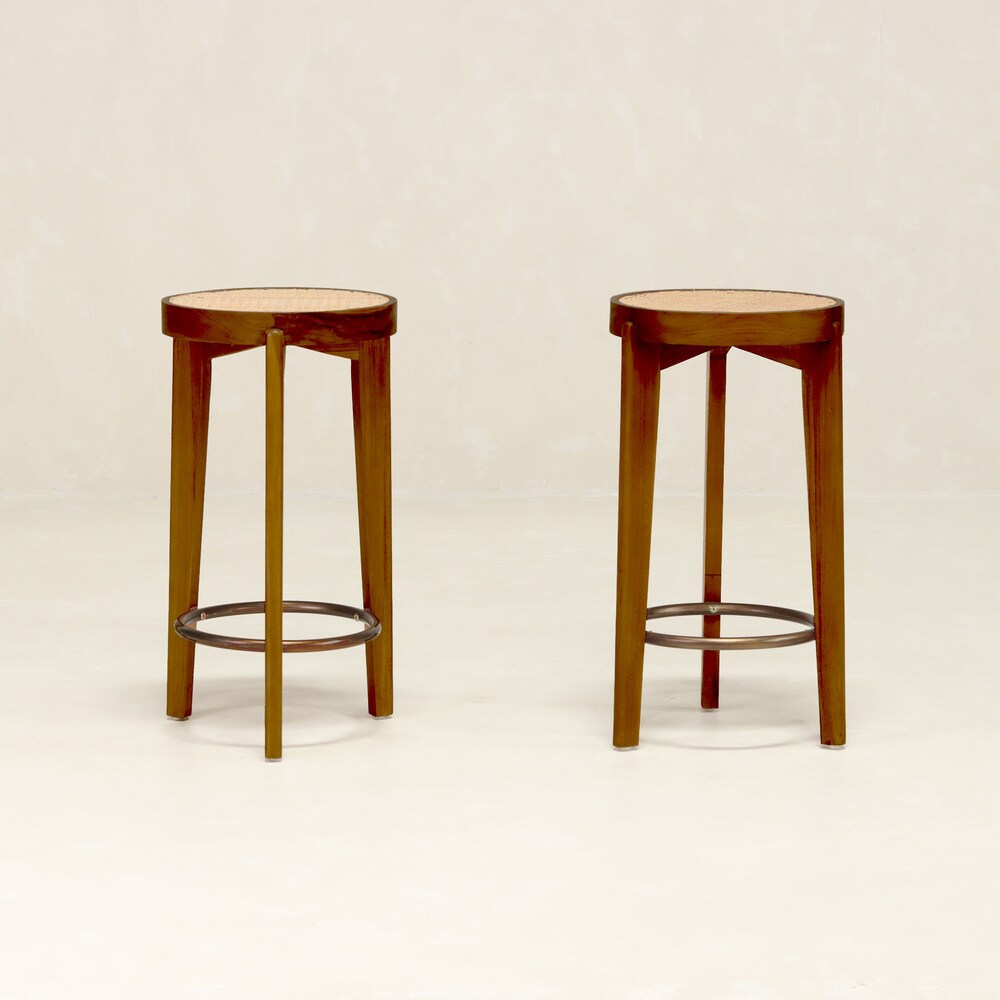 This stool is sold in sets of 2. Price is listed per stool. Brass footrest ring requires minimal assembly.
