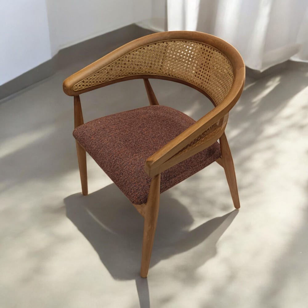 Rattan Dining Chair with Wooden Arms, Handmade Modern Kitchen & Living Room Chairs, Stylish Comfortable Seating for Dining Table