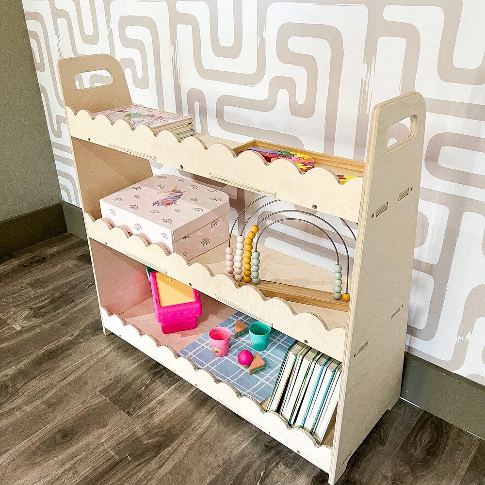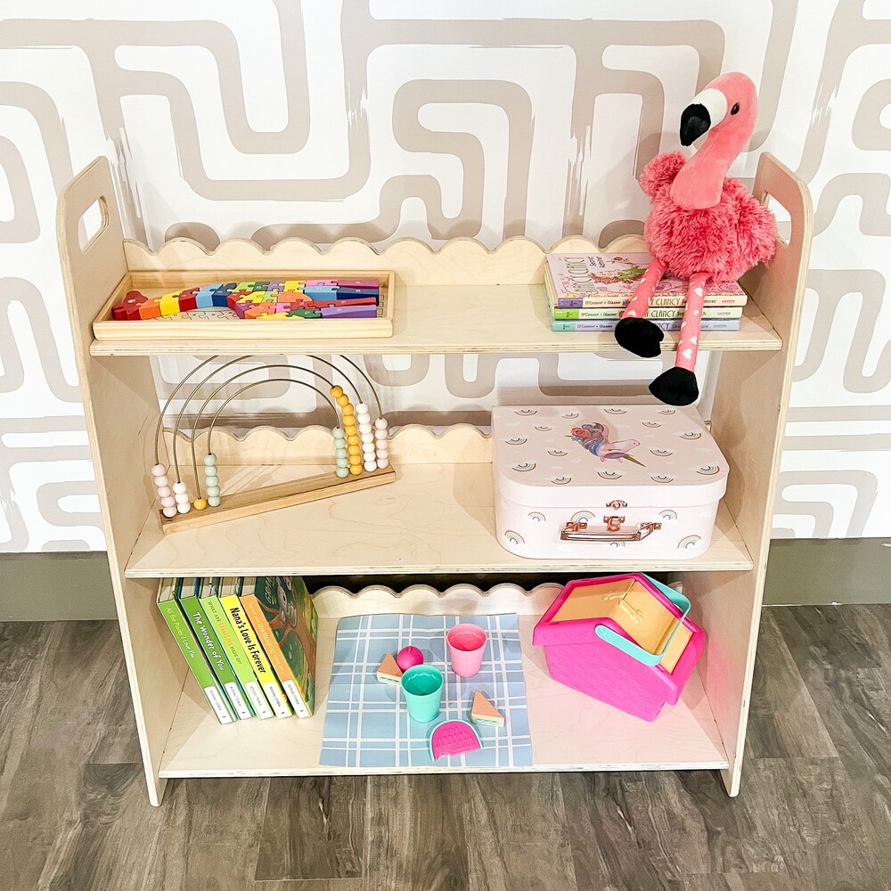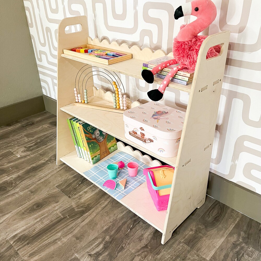 RAY Montessori Scalloped Toy Shelf Toddler Toyshelf Montessori Wooden Furniture Nursery Gift Wooden Toy Storage Playroom Decor Kids Room
