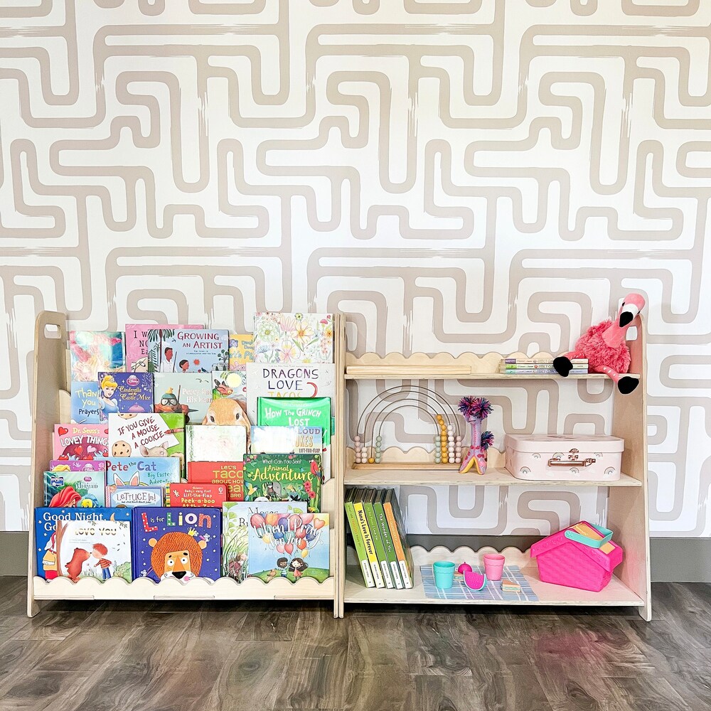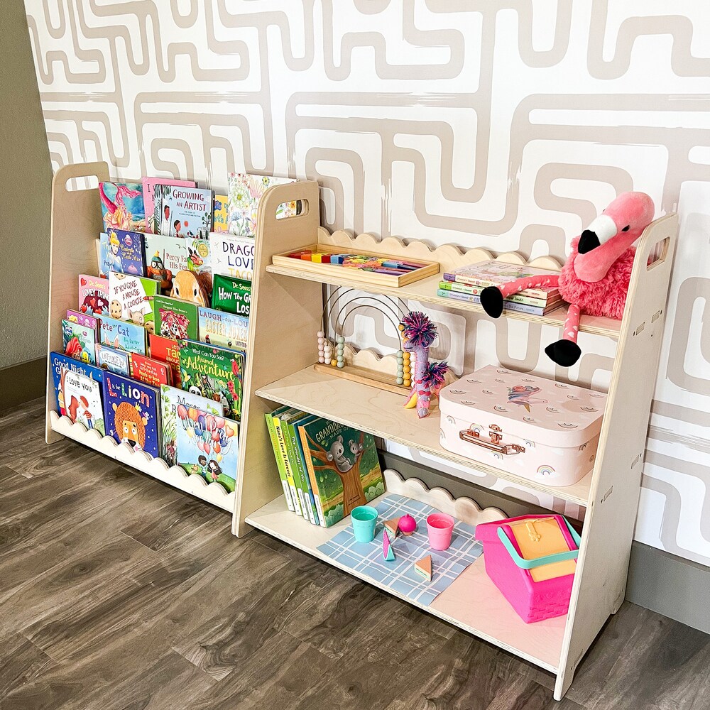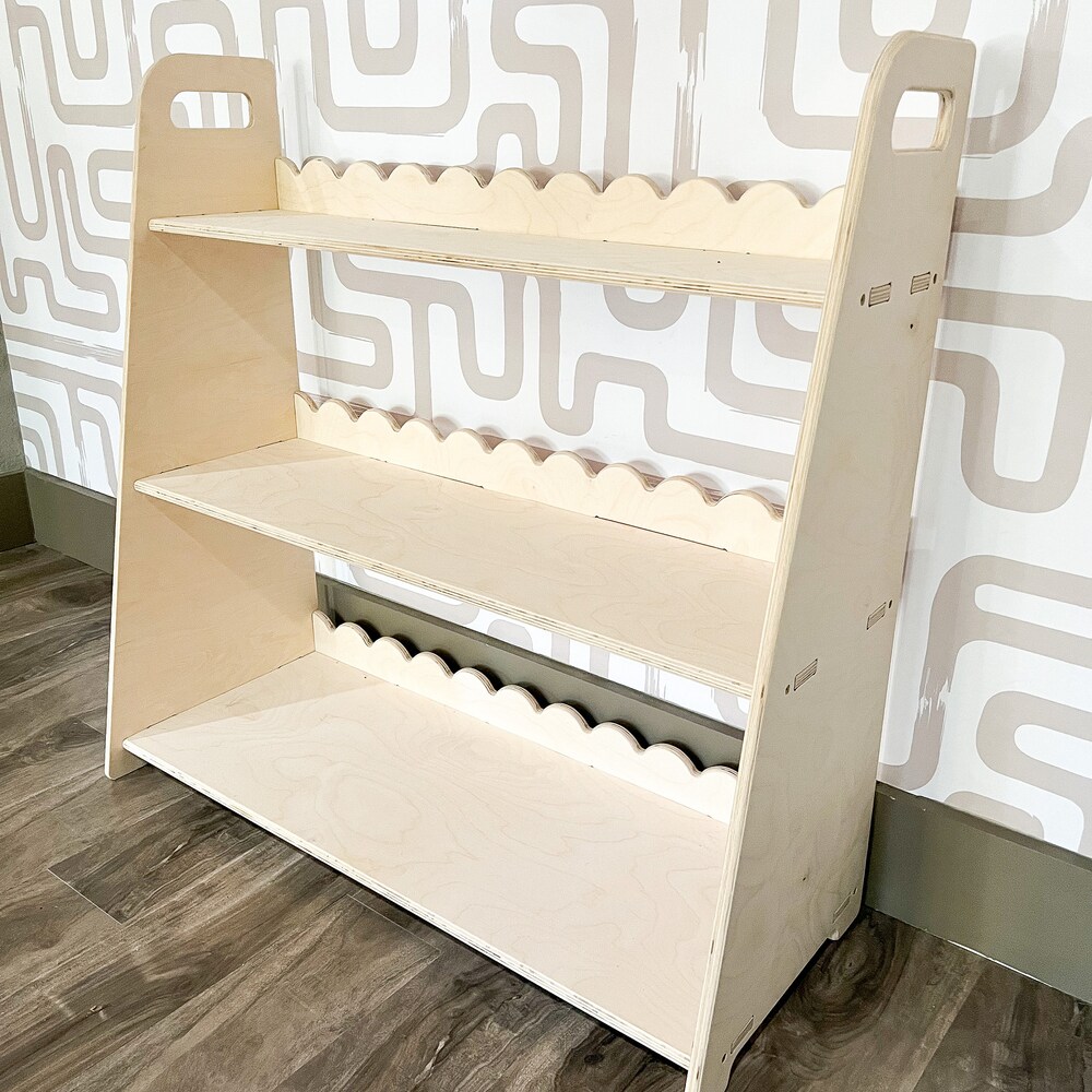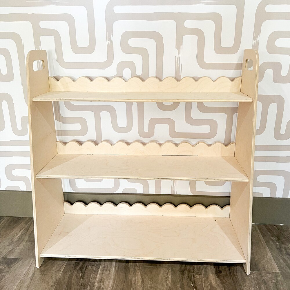 RAY Montessori Scalloped Toy Shelf Toddler Toyshelf Montessori Wooden Furniture Nursery Gift Wooden Toy Storage Playroom Decor Kids Room
