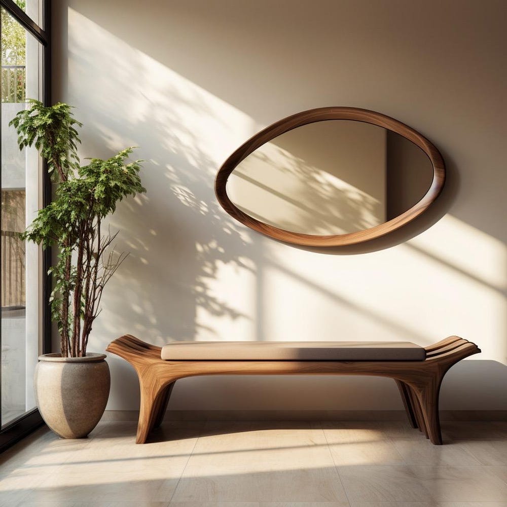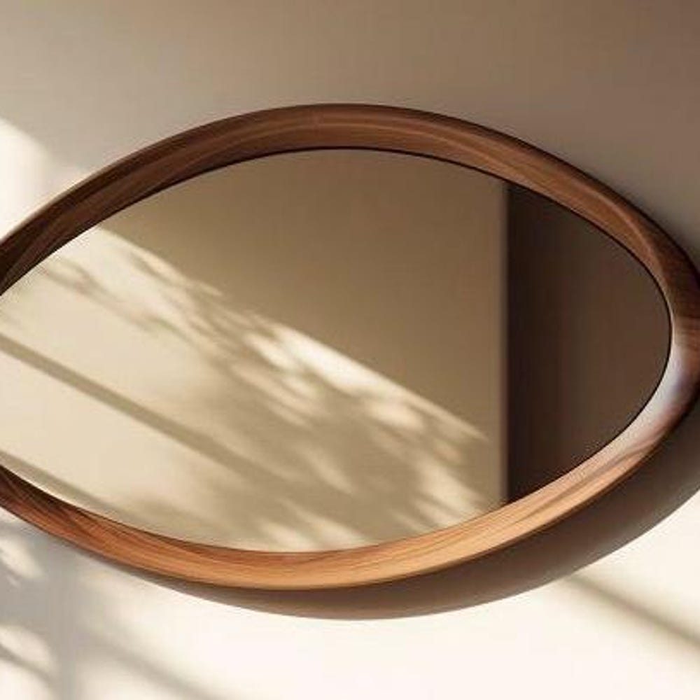 Real Walnut Wooden Frame Mirror, Asymmetrical Mirror, Irregular Mirror, Bathroom Mirror, Vanity Mirror, Wavy Mirror, Home Decor Mirror