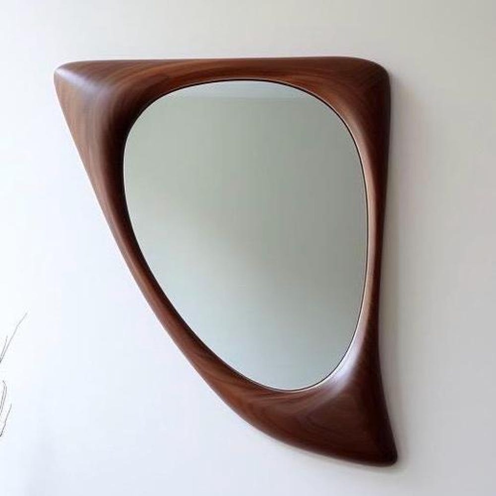 Real Walnut Wooden Frame Mirror, Asymmetrical Mirror, Irregular Mirror, Bathroom Mirror, Vanity Mirror, Wavy Mirror, Home Decor Mirror