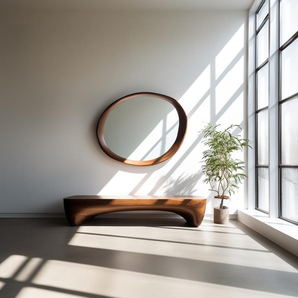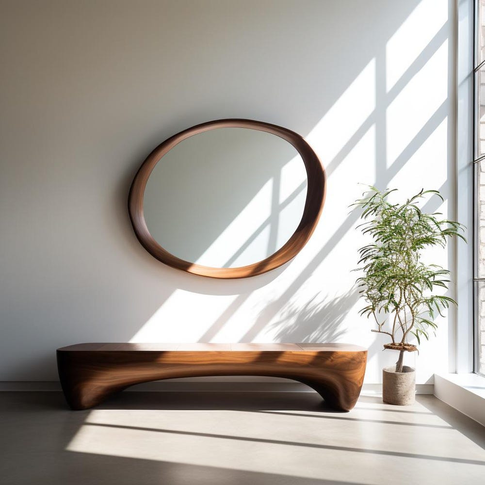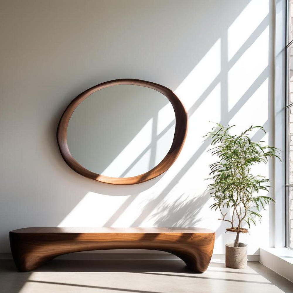 Real Walnut Wooden Frame Mirror, Asymmetrical Mirror, Irregular Mirror, Bathroom Mirror, Vanity Mirror, Wavy Mirror, Home Decor Mirror