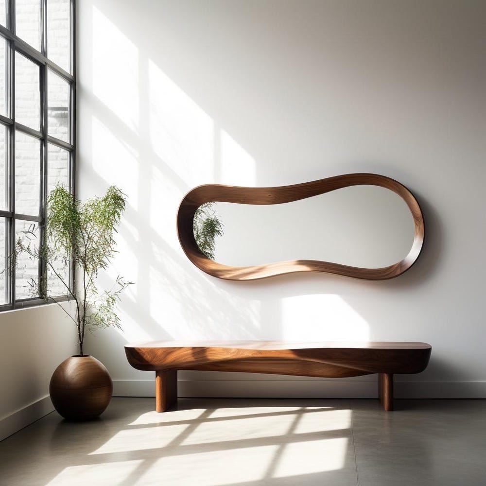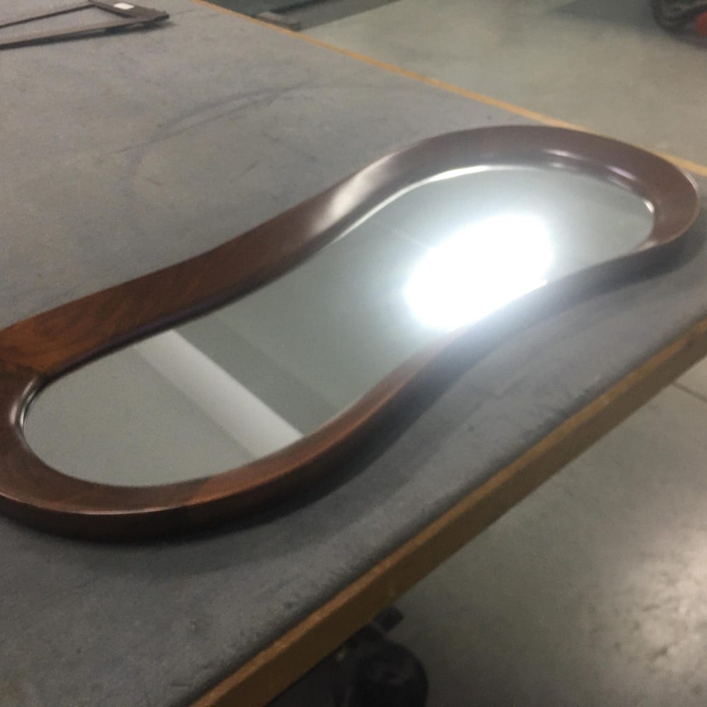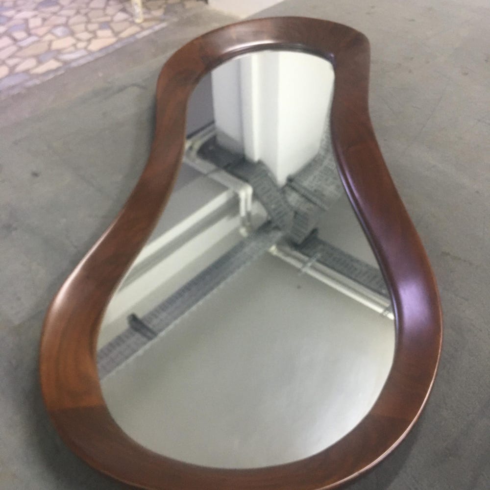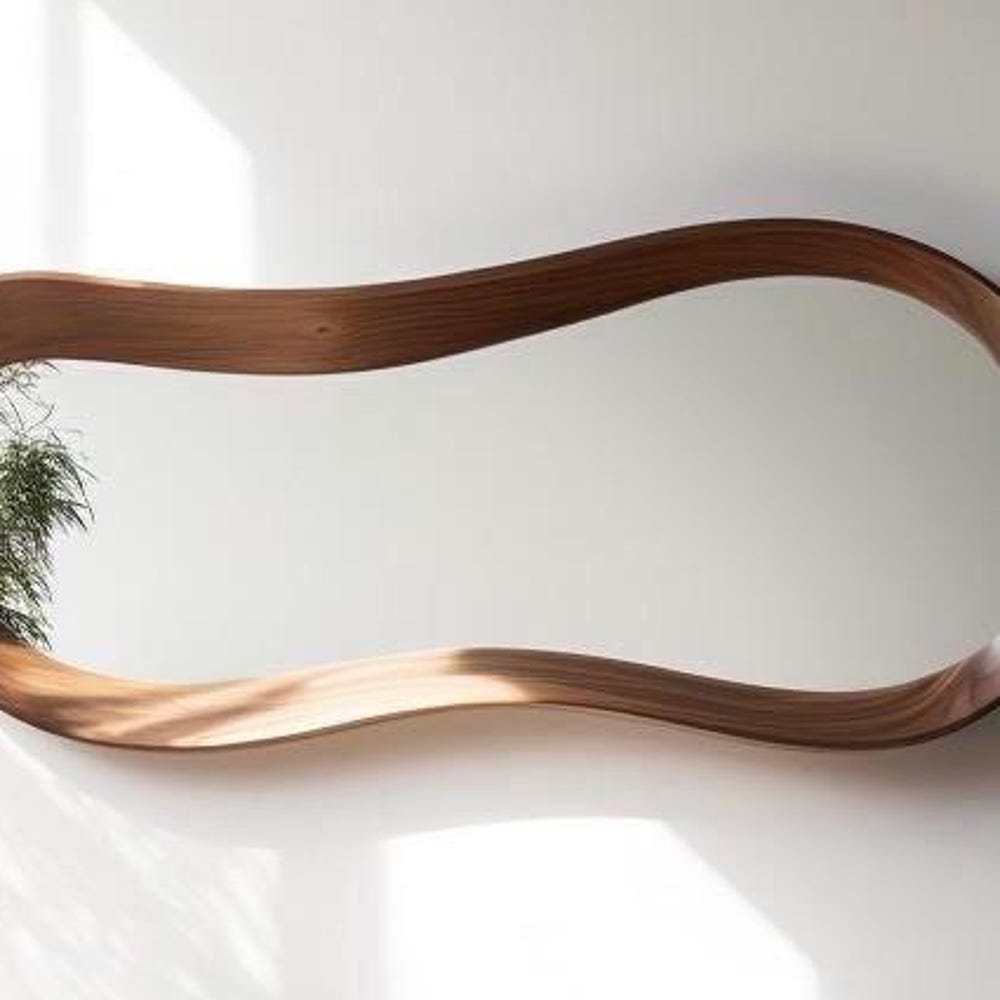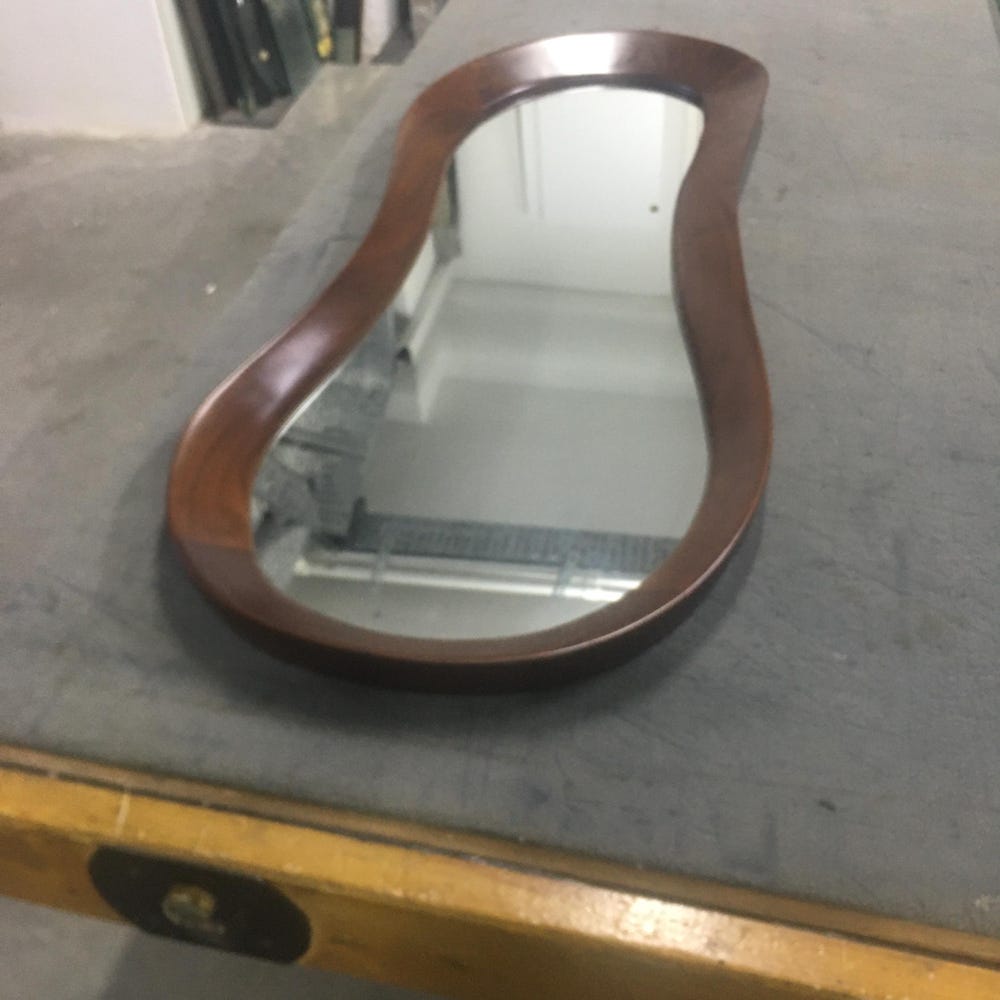 Real Walnut Wooden Frame Mirror, Asymmetrical Mirror, Irregular Mirror, Bathroom Mirror, Vanity Mirror, Wavy Mirror, Home Decor Mirror