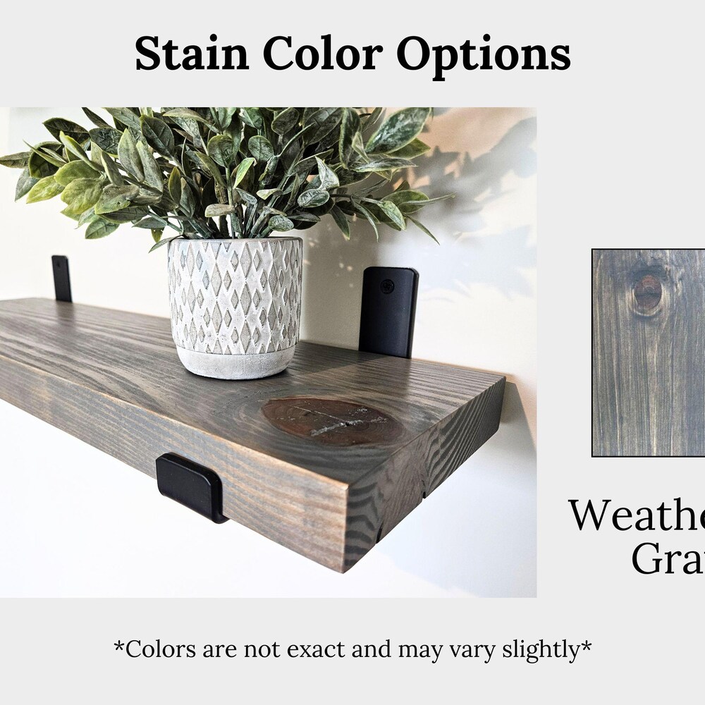 Add style and function to your home with our set of 2 solid wood shelves. These rustic floating shelves combine modern farmhouse charm with practical storage, making them perfect for your kitchen, bathroom, living room, office, or bar. Each set includes 4 industrial metal brackets and all necessary hardware for easy installation.