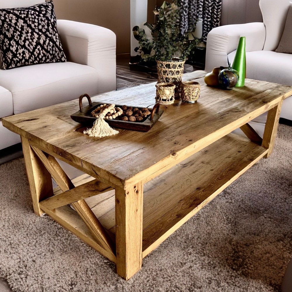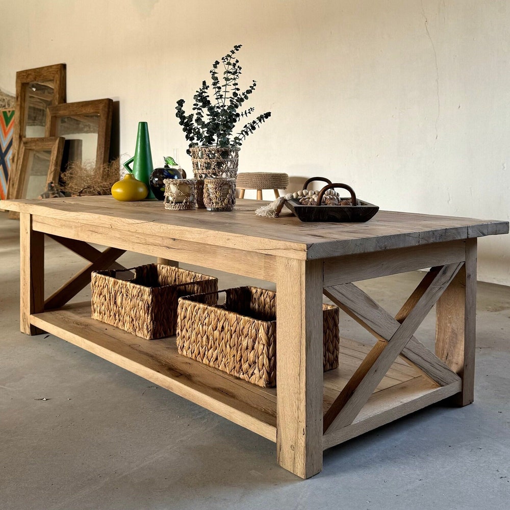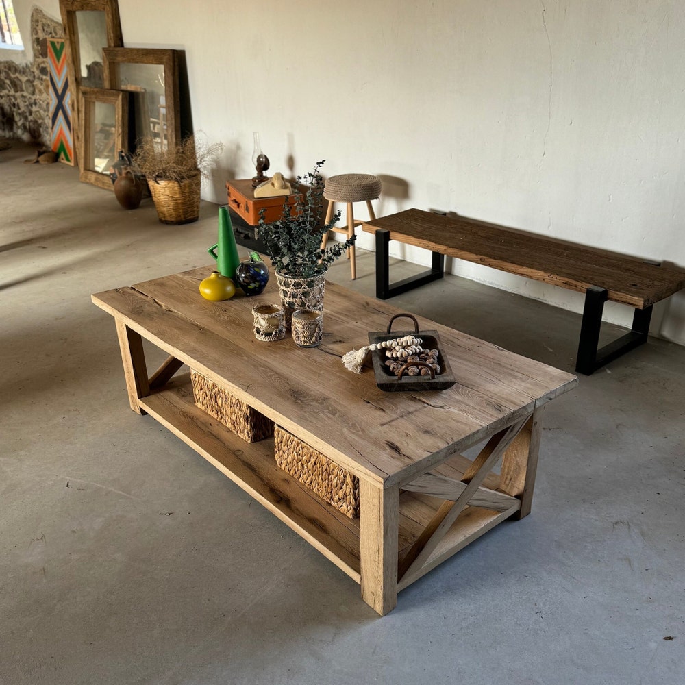 Reclaimed Coffee Table with Storage, Rustic Reclaimed Oak Furniture, Solid Oak Table Farmhouse, Rustic Coffee Table Wood with Storage…