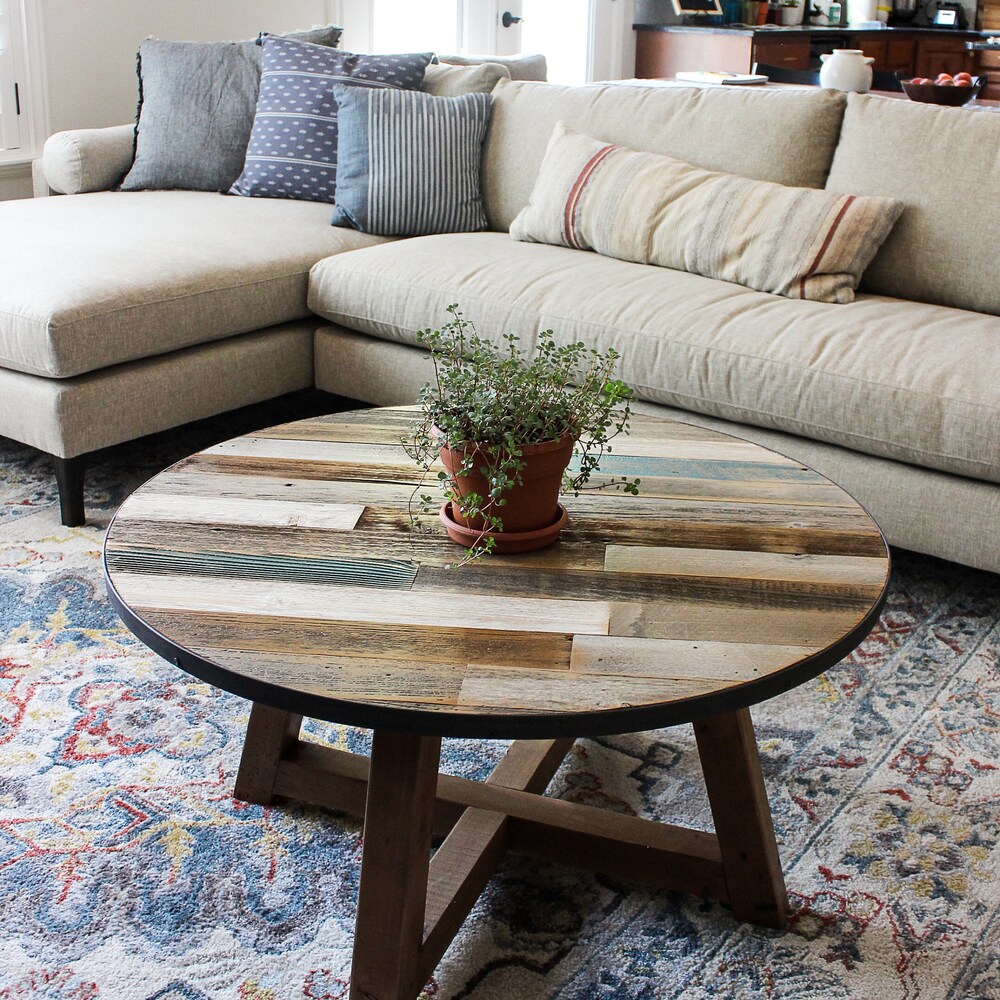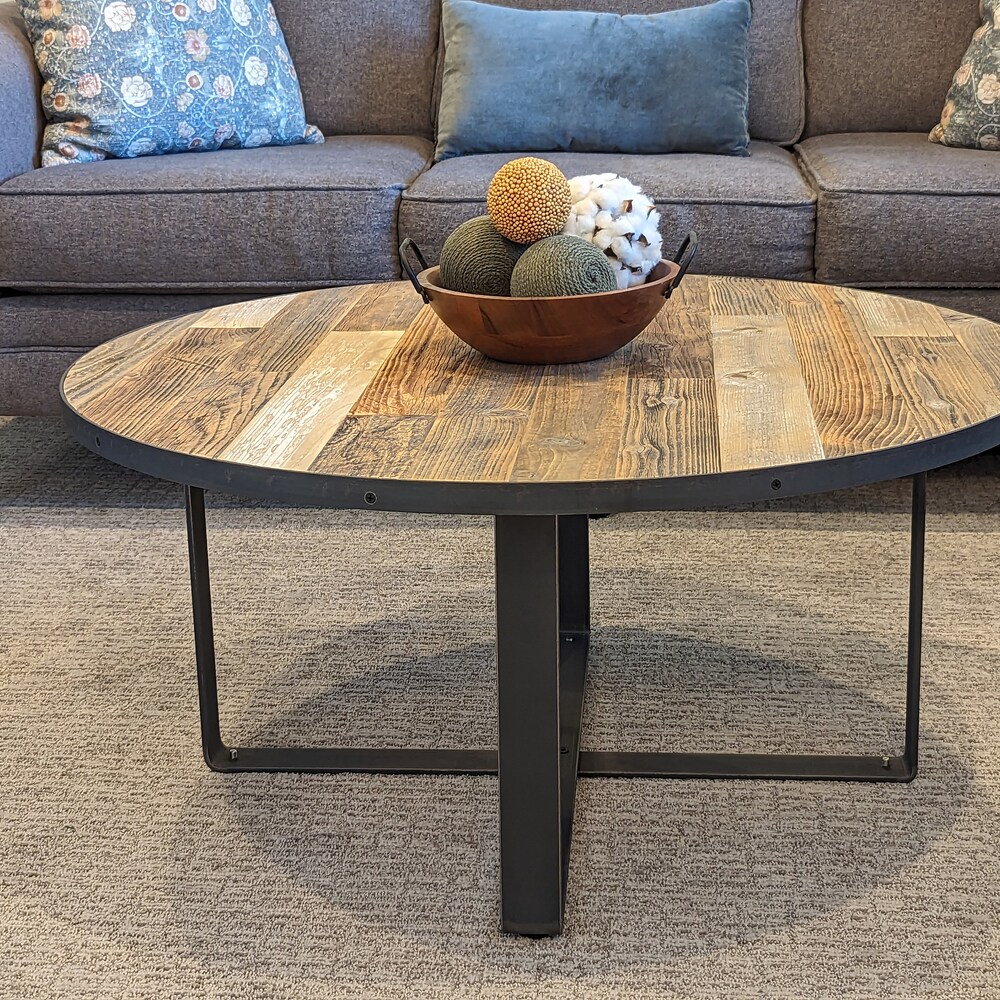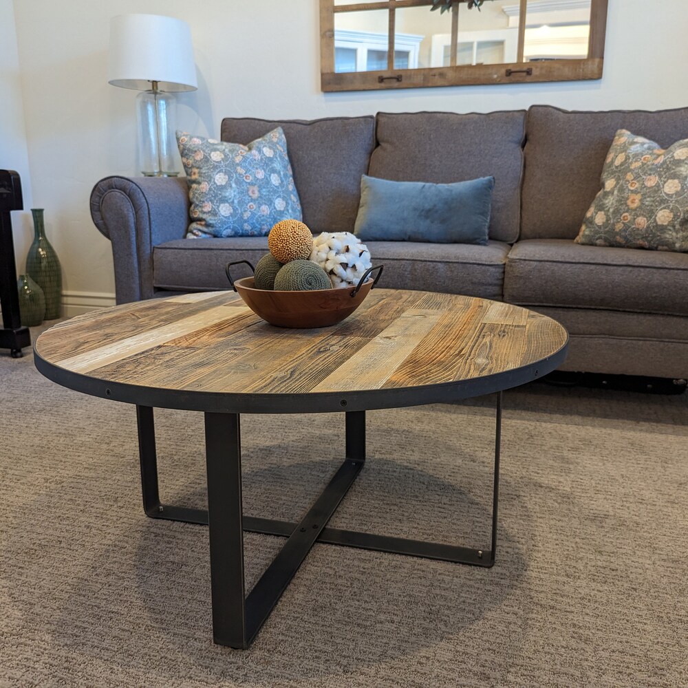 Your coffee table is at the center of your living room…which is at the center of your house…which is at the center of your life…which is at the center of your universe! Don’t settle for the usual uninspiring options available at your local furniture store! Make a powerful modern rustic industrial farmhouse statement with one of our beautiful round reclaimed wood coffee tables! This jaw-dropping, conversation-stopping circle coffee table can be the last piece of awe-inspiring farmhouse furniture to complete a room or it can be the farm style piece to get your decor going in the right direction. Either way, you can’t go wrong with this circle wood coffee table.