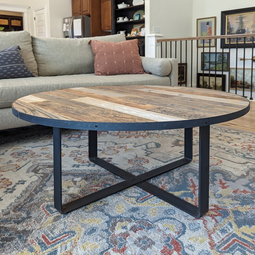Reclaimed Farmhouse Wood Coffee Table with X Style Industrial Metal Legs