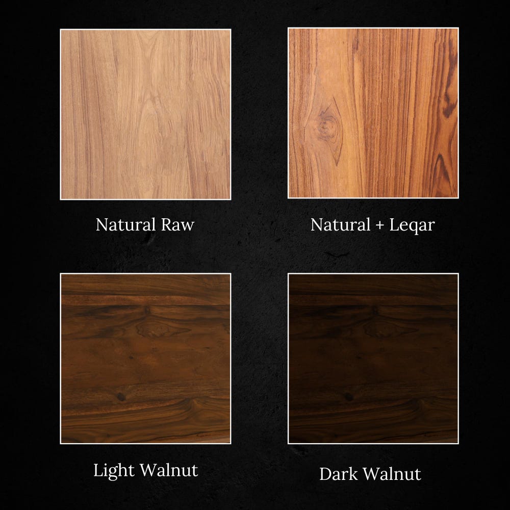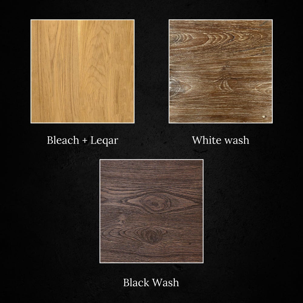 | Primary color | Natural Raw, Natural + Leqar, Light Walnut, Dark Walnut, Bleach + Leqar, White wash, Black Wash |