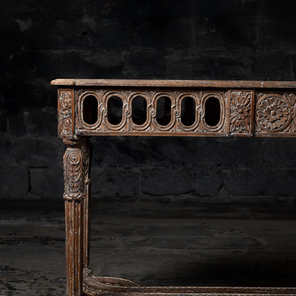 Reclaimed Teak wood console table | Royal Heritage Carving Console | Handcarved Entryway Console | Antique White Wash finish |