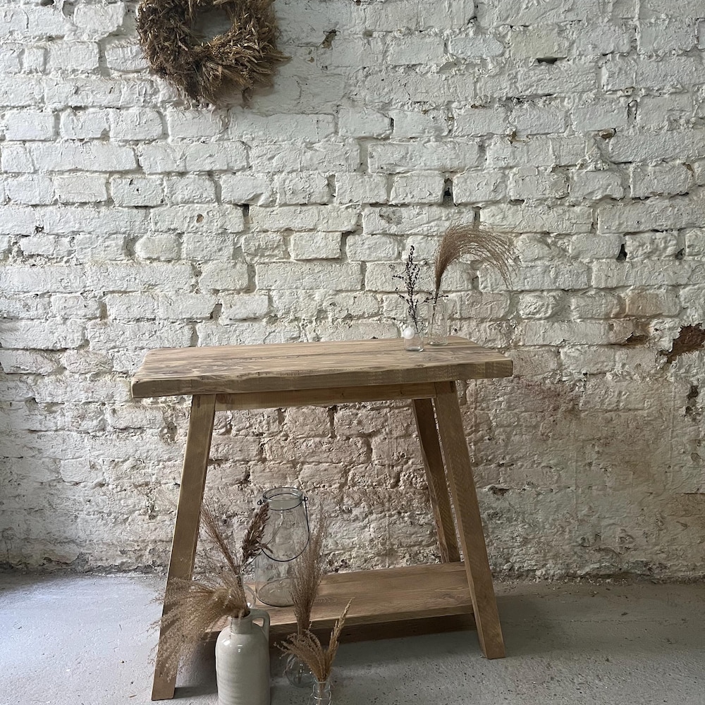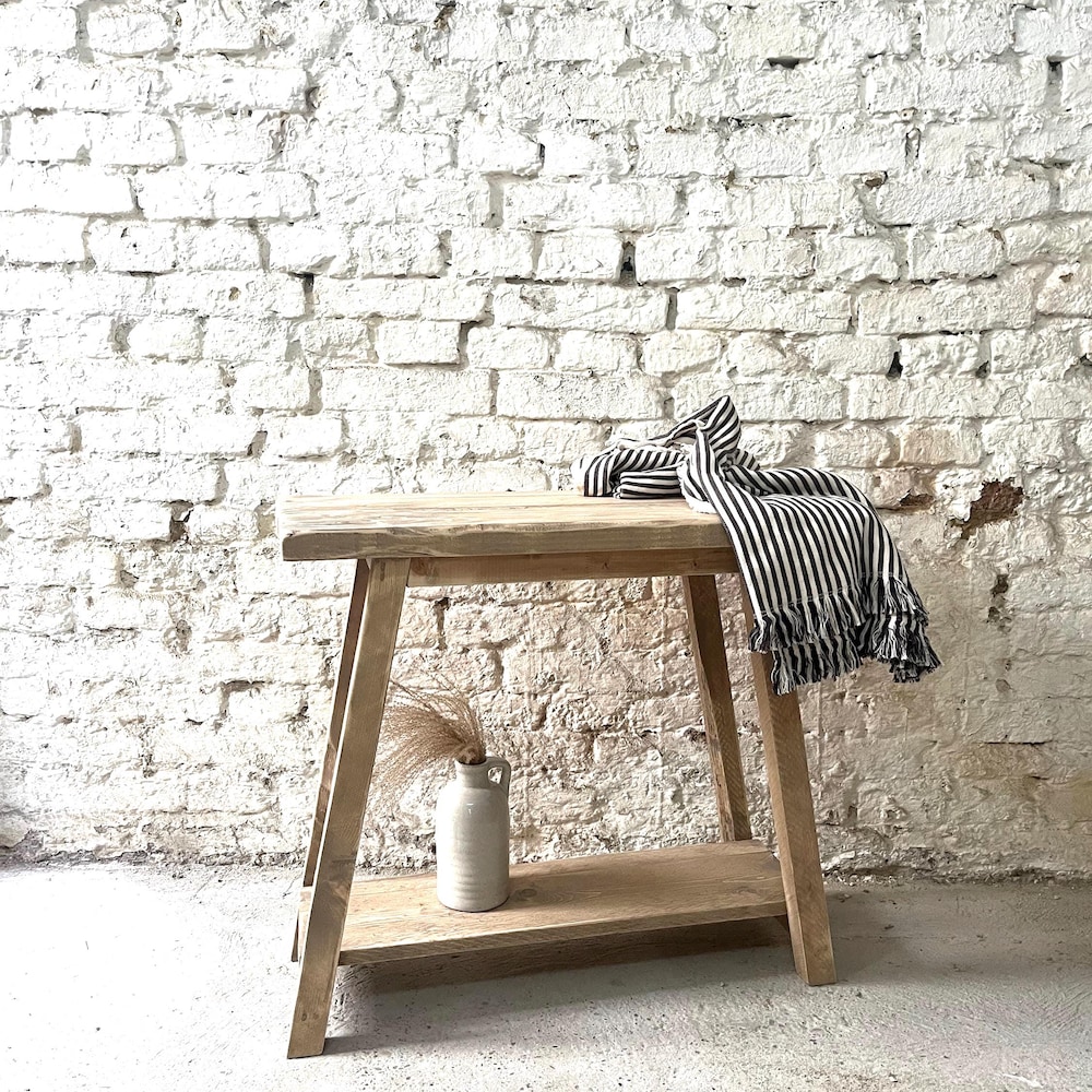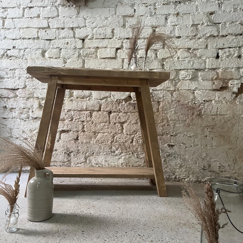 Adorable console with reclaimed wood surface – each piece is unique! The console is usually 70 cm high (but can also be customized) and 35-40 cm wide and is also ideal as a washstand.