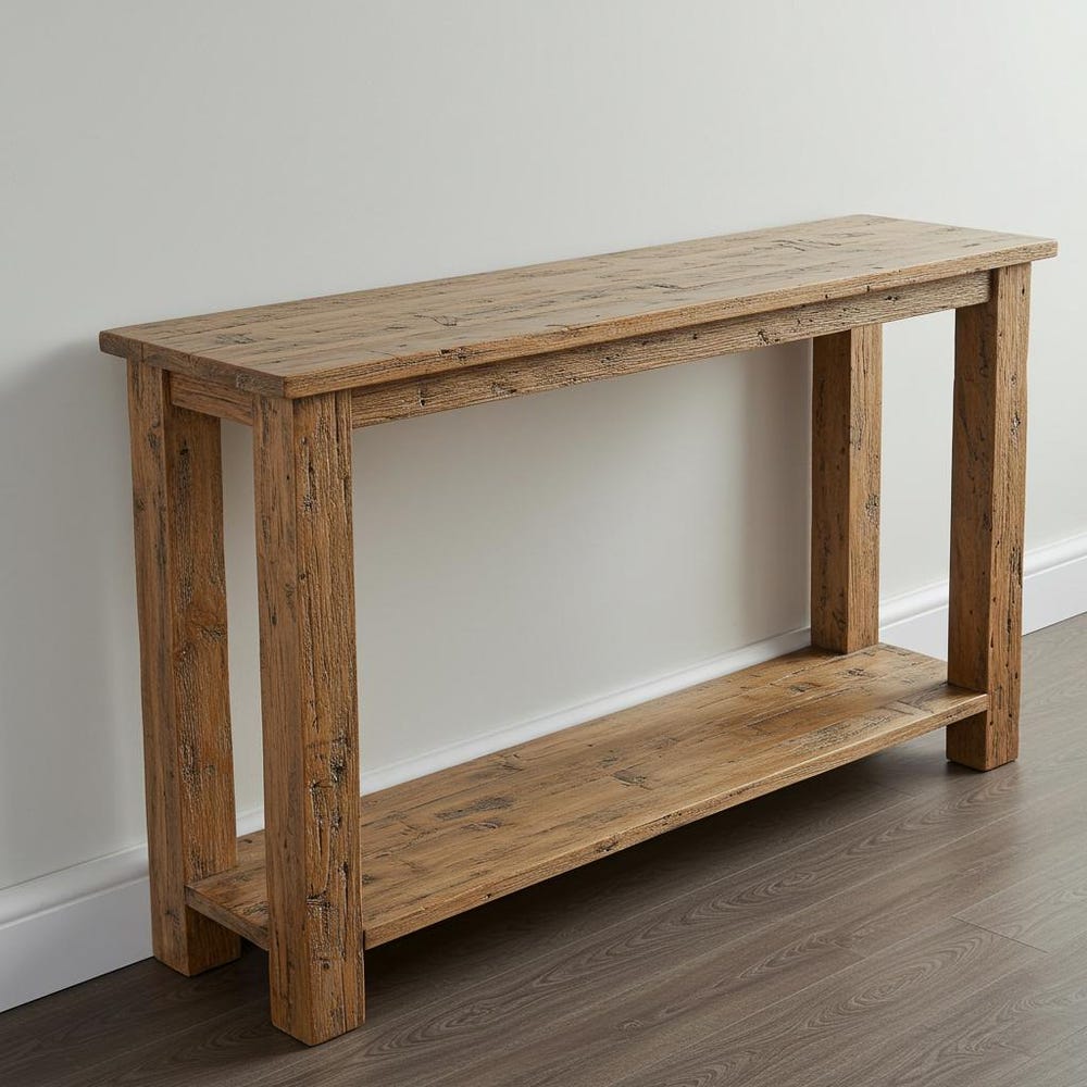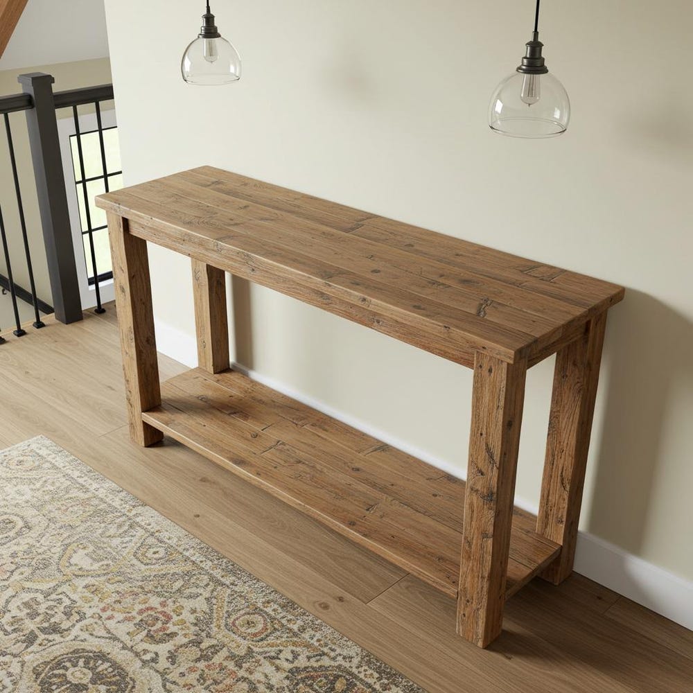 Handcrafted from genuine reclaimed wood, this console table brings rustic charm to any space. Each piece tells its own story through unique grain patterns, knots, and natural character marks that only authentic aged wood possesses.The practical lower shelf provides extra storage for books, baskets, or decorative items.