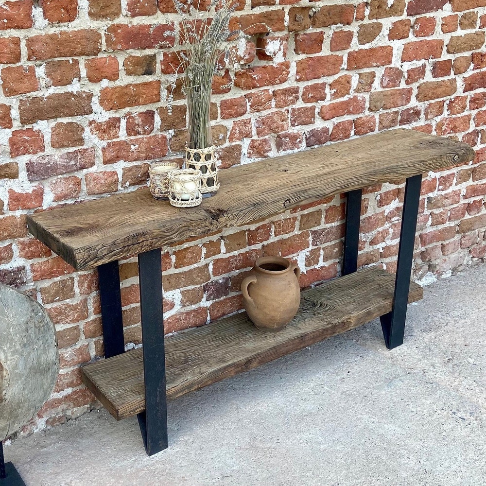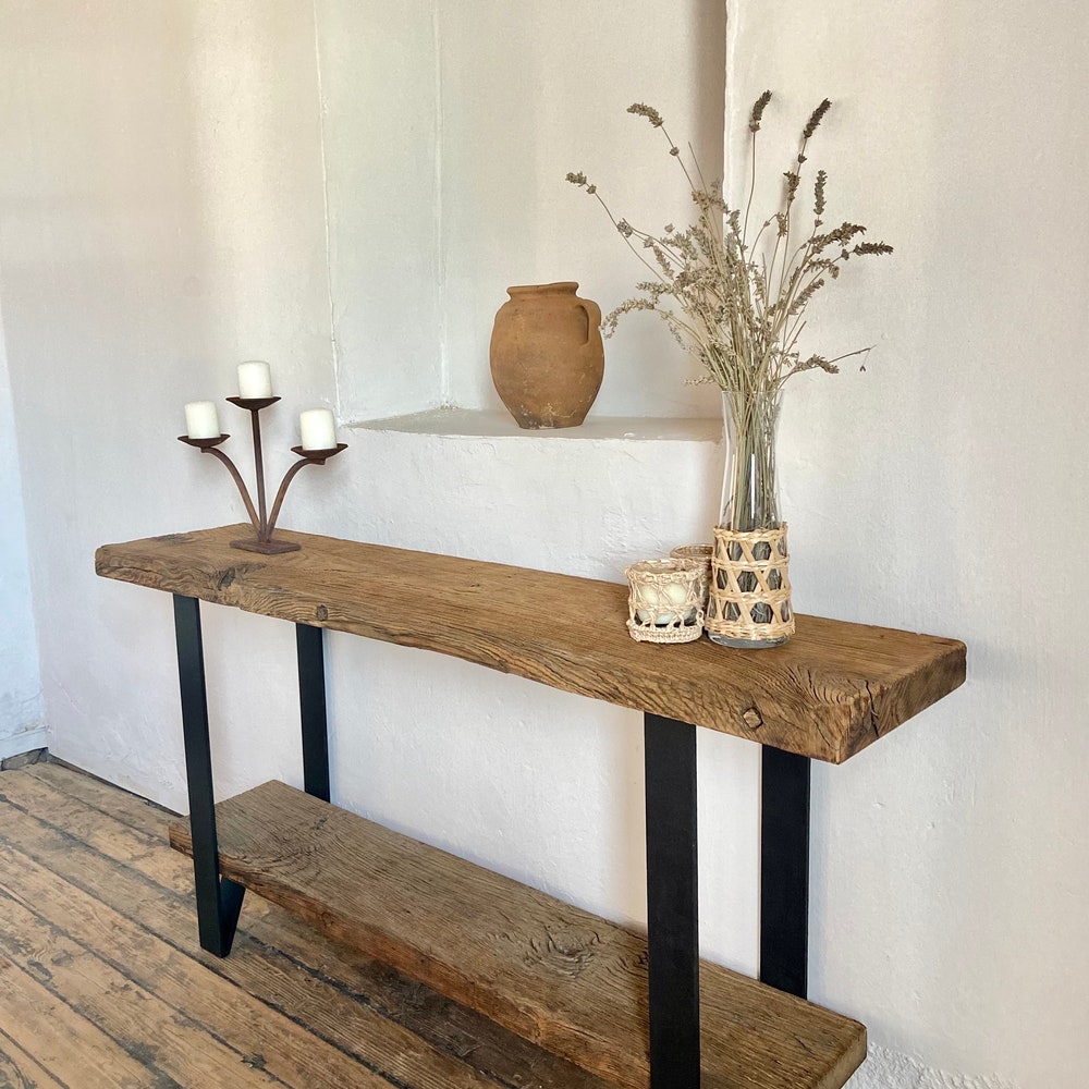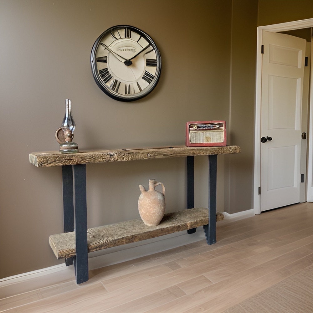 Reclaimed Wood Console Table with Shelf, Rustic Wood Hallway Table, Long Console Table Metal Legs, Reclaimed Console Table Wood