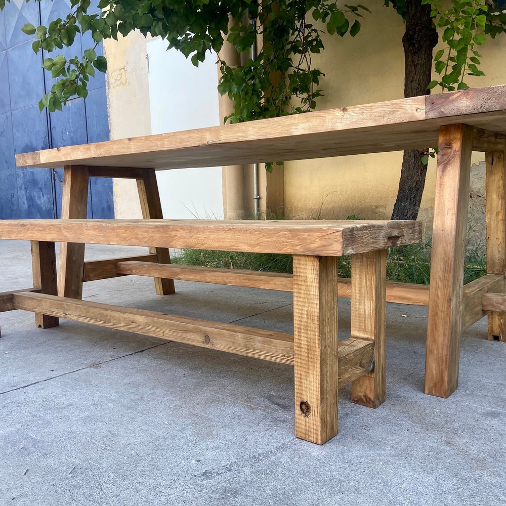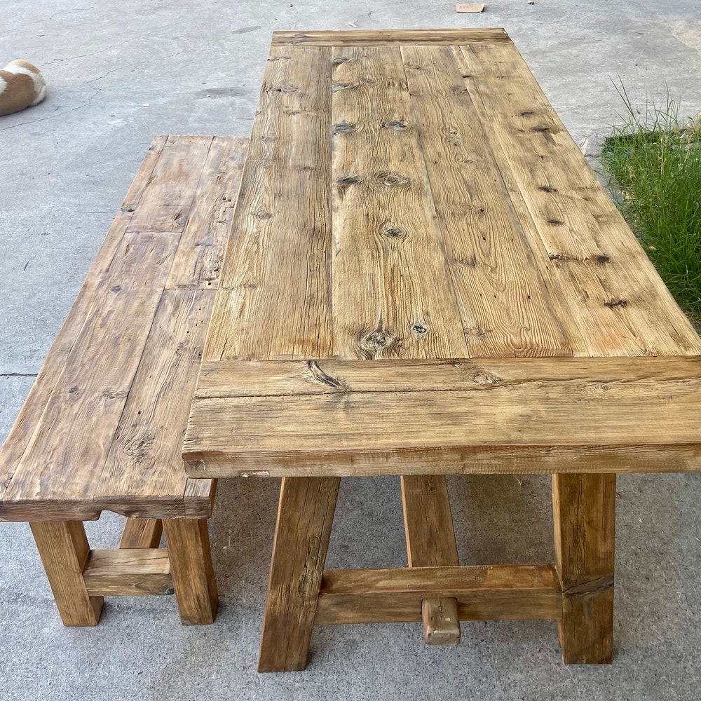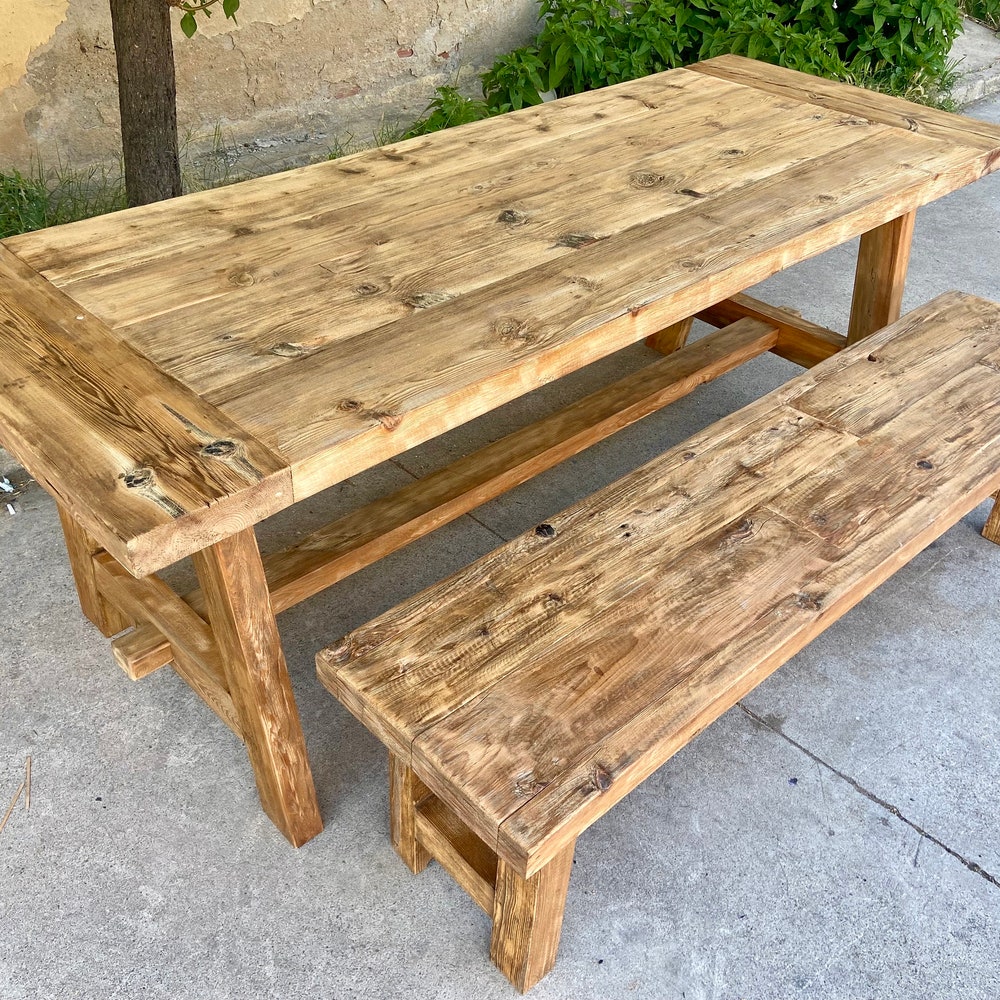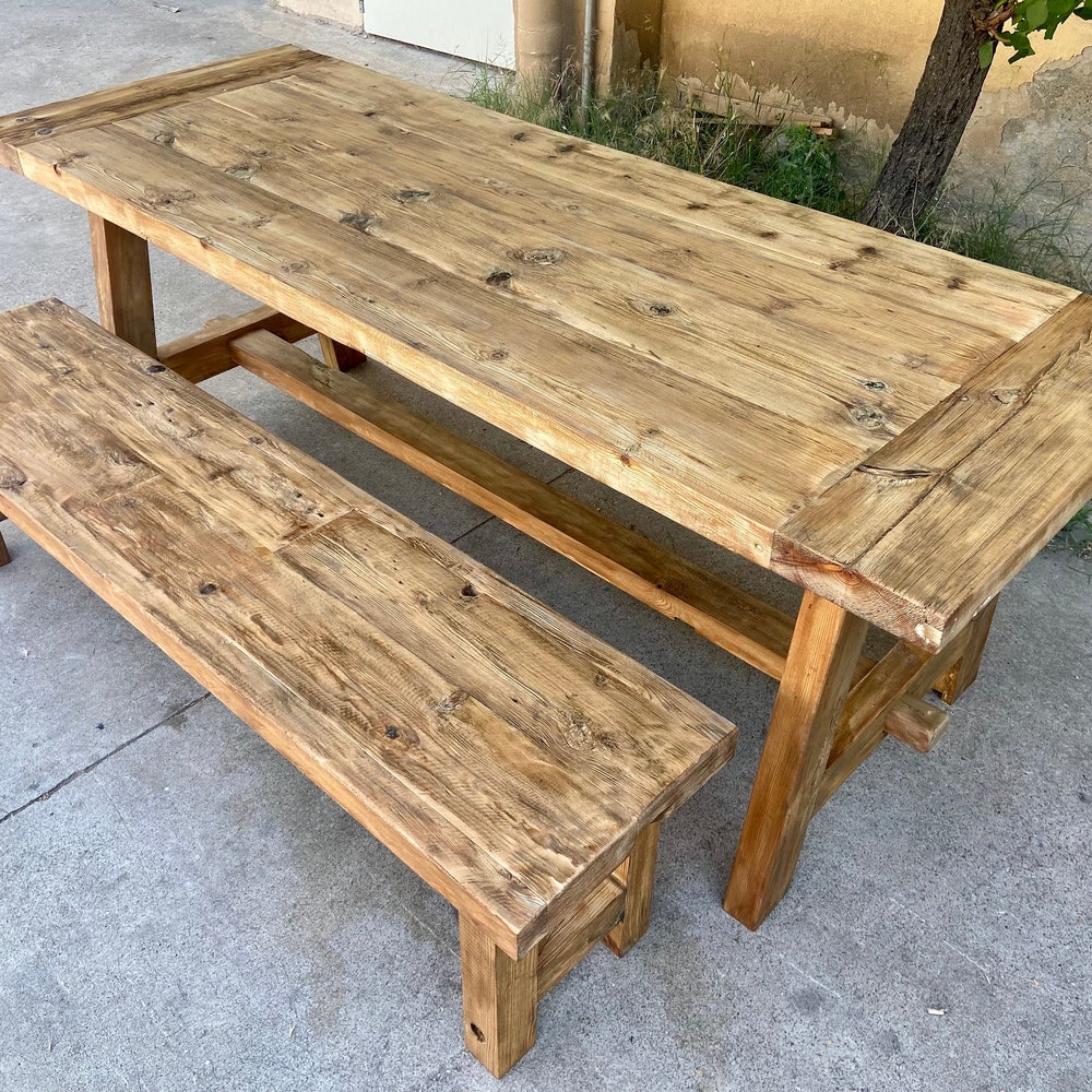 Reclaimed Wood Dining Table and Bench Set, Farmhouse Table Set, Farmhouse Dining Table Bench, Dining Table Rustic Reclaimed