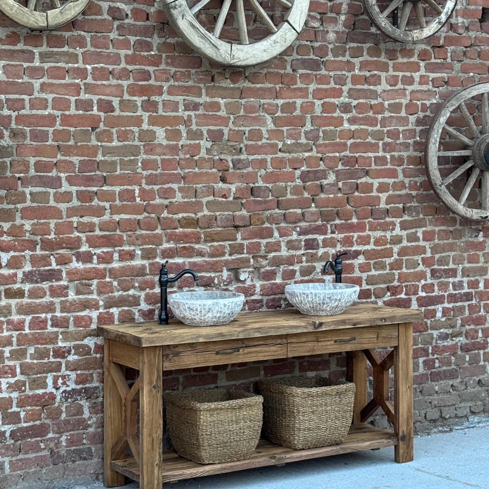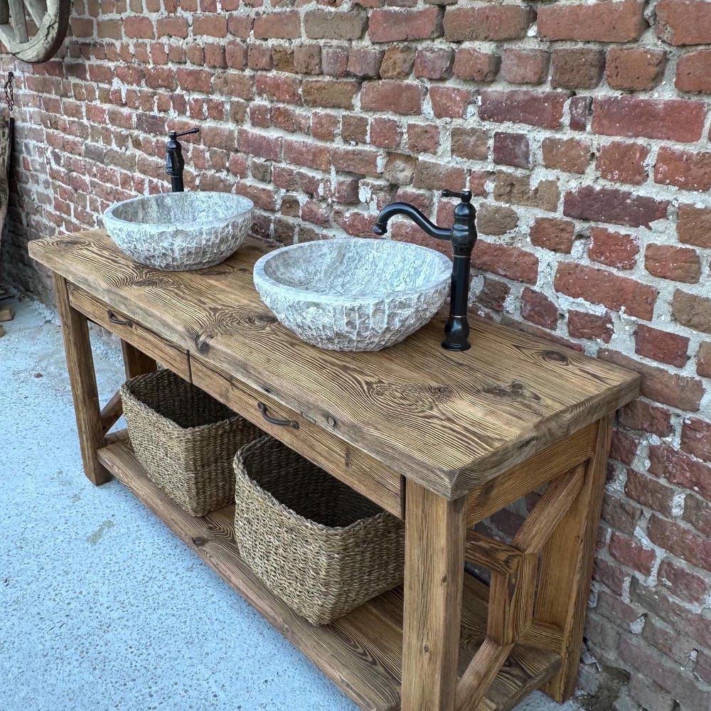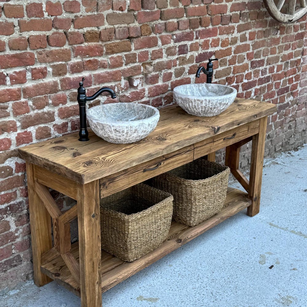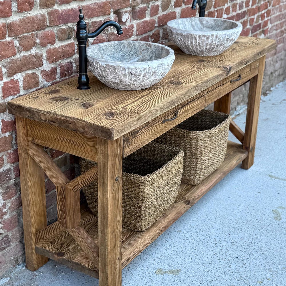 Reclaimed Wood Farmhouse Double Sink Vanity with Drawers for Rustic Bathrooms…