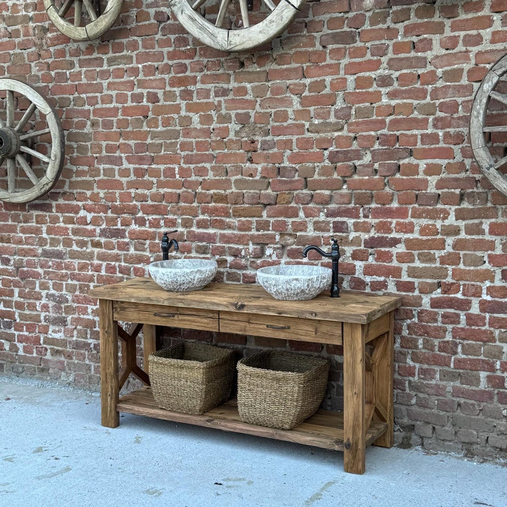 Reclaimed Wood Farmhouse Double Sink Vanity with Drawers for Rustic Bathrooms