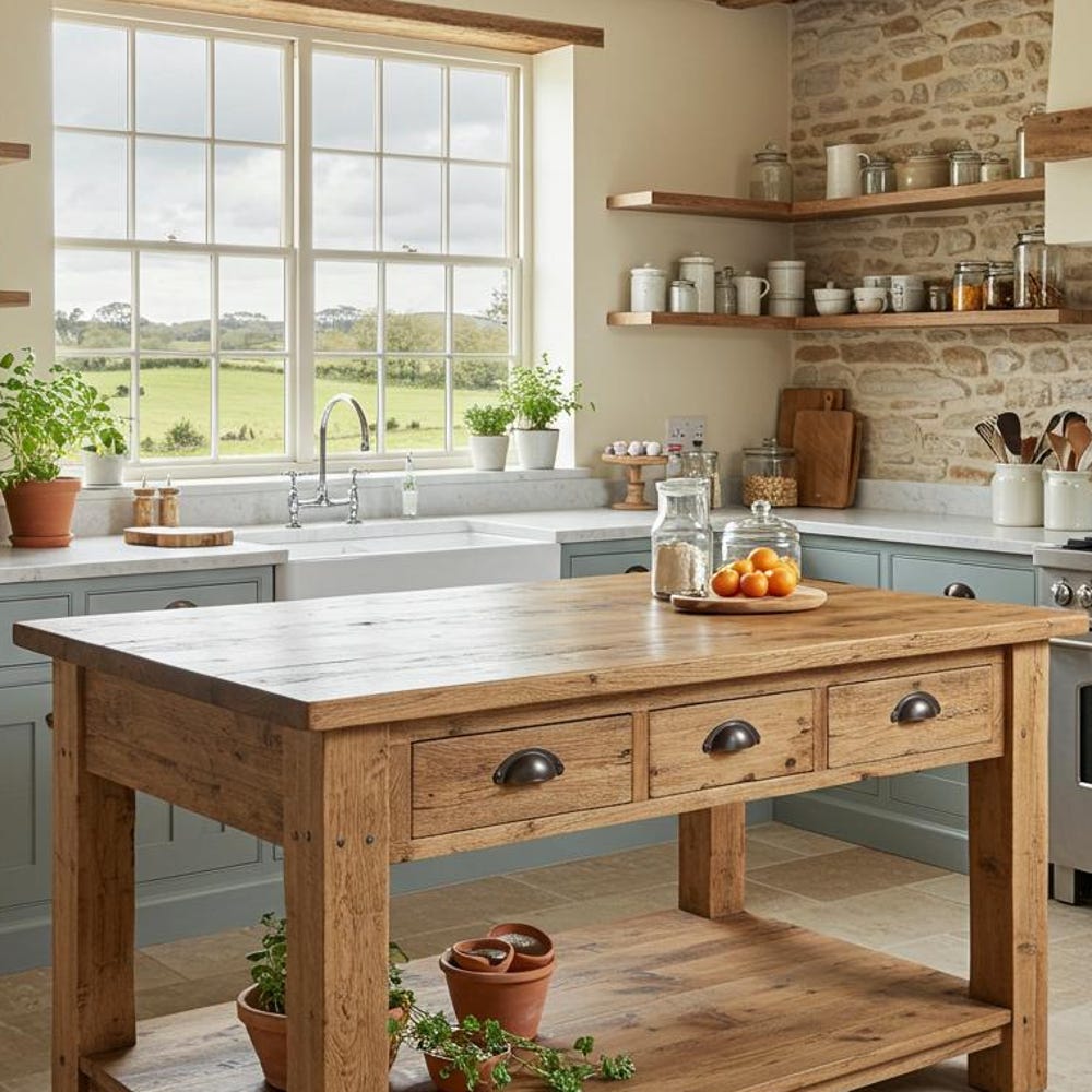 Reclaimed Wood Kitchen Island Rustic Counter Height Kitchen Table, Custom Farmhouse Kitchen Island Wood Counter Height Table with 3 Drawers