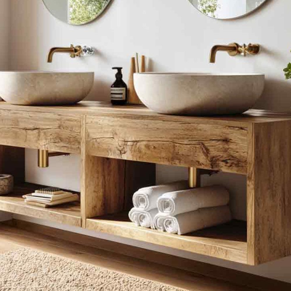 🌟 Double Bathroom Vanity with Drawers | Handmade Rustic Design | Chestnut Wood